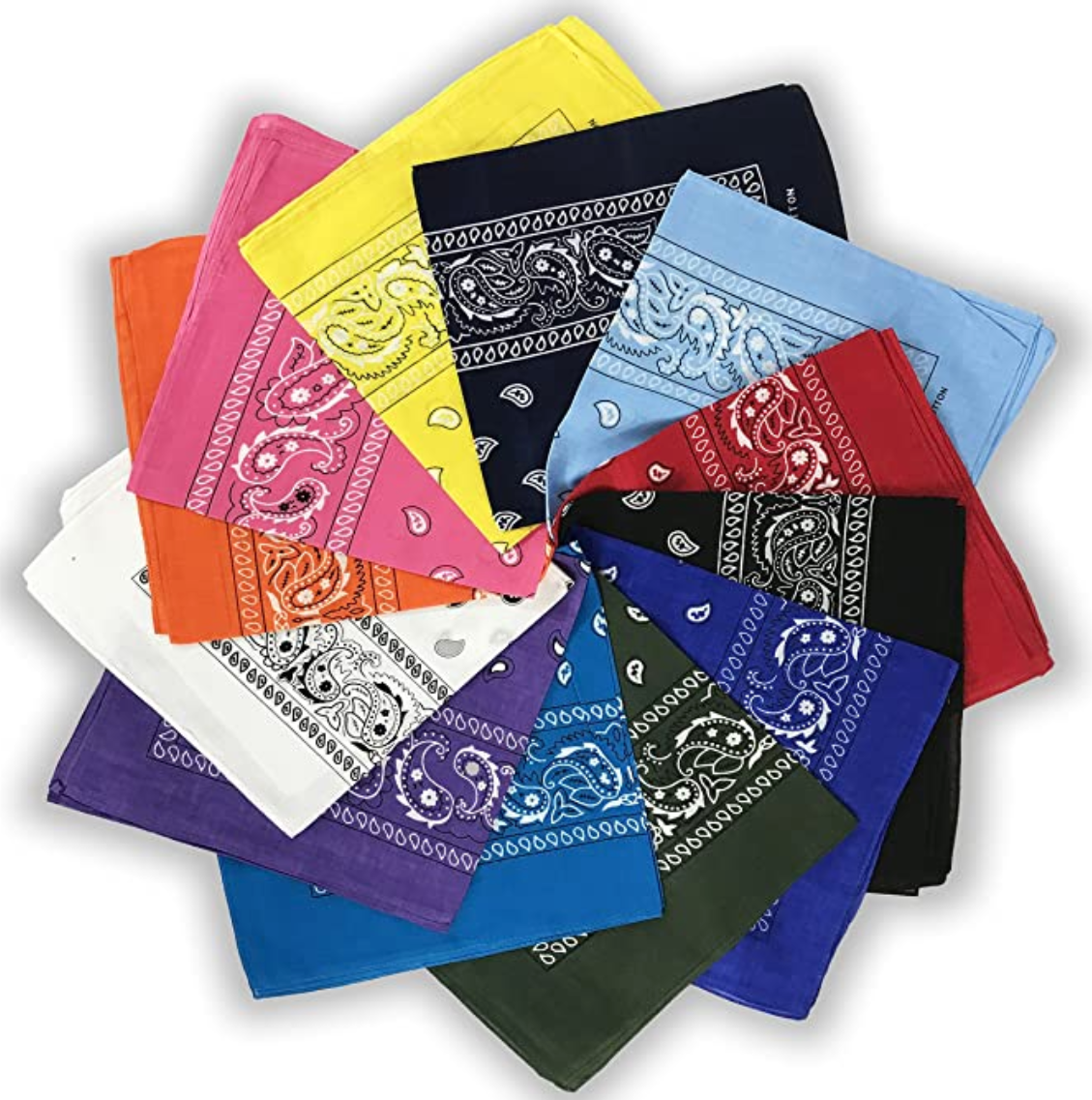 12-PC 100% Cotton Premium Bandanas, 12 colors assorted