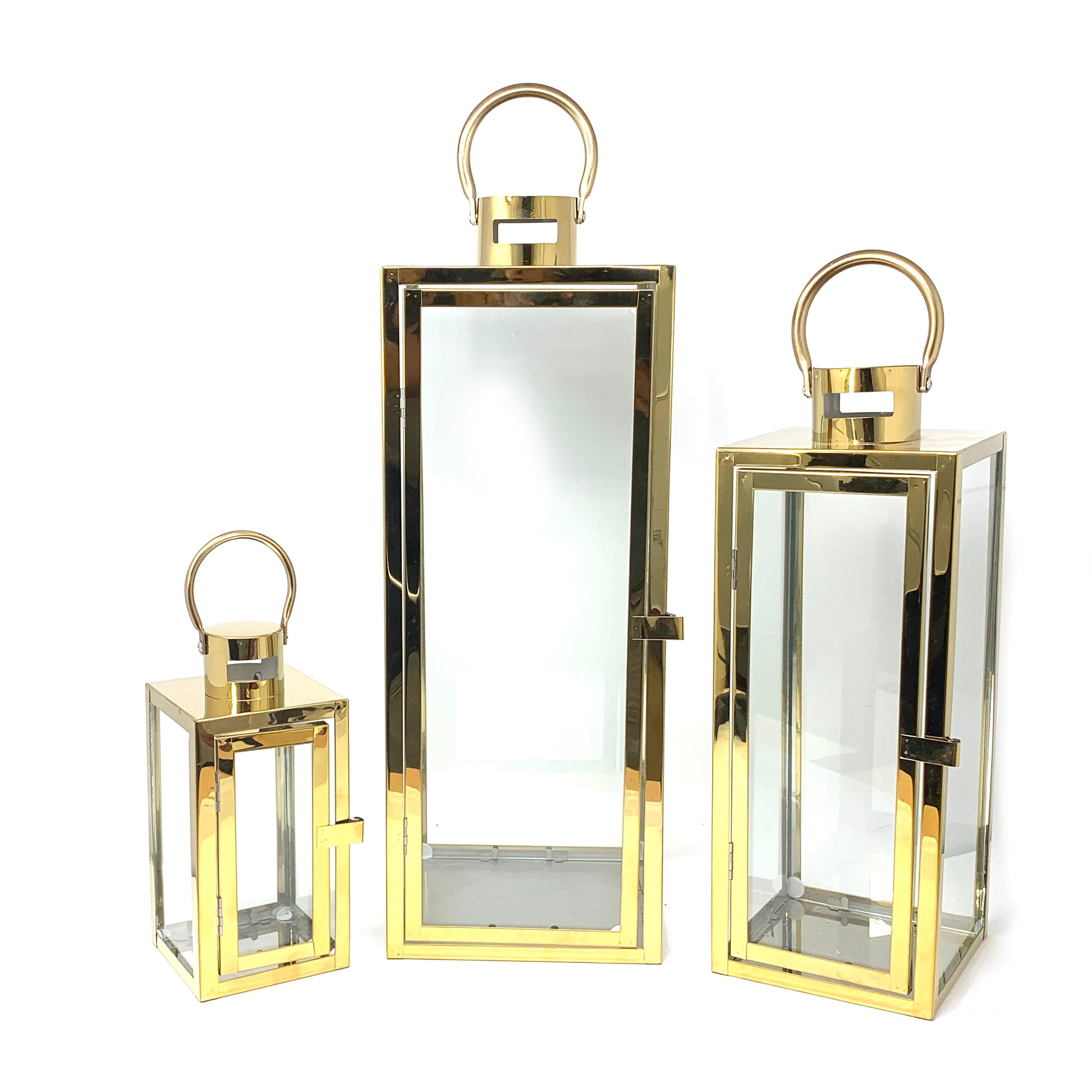 Allgala Lanterns 3-PC Set Jumbo Luxury Modern Indoor/Outdoor Hurricane Candle Lantern Set with Chrome Plated Structure and Tempered Glass-Cuboid