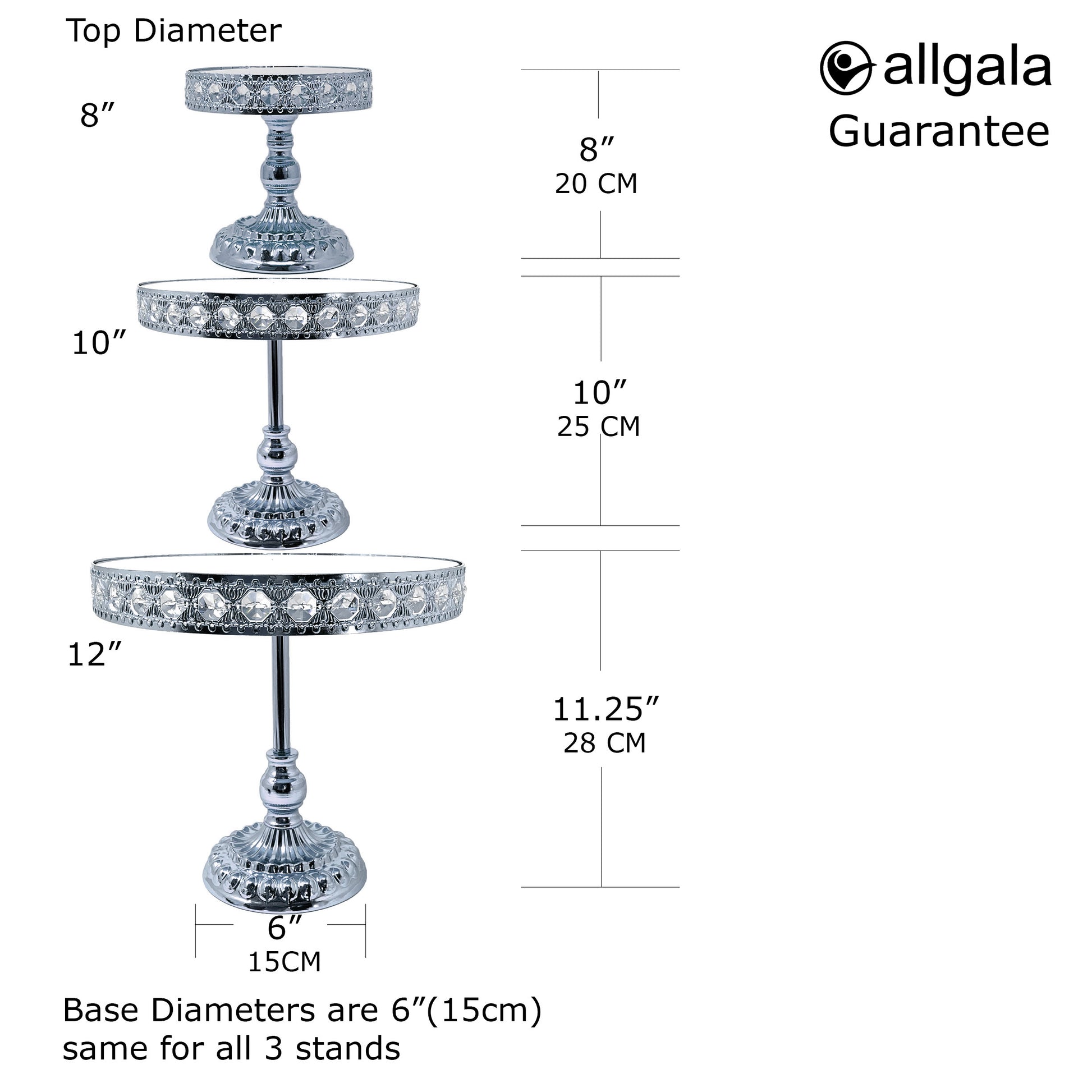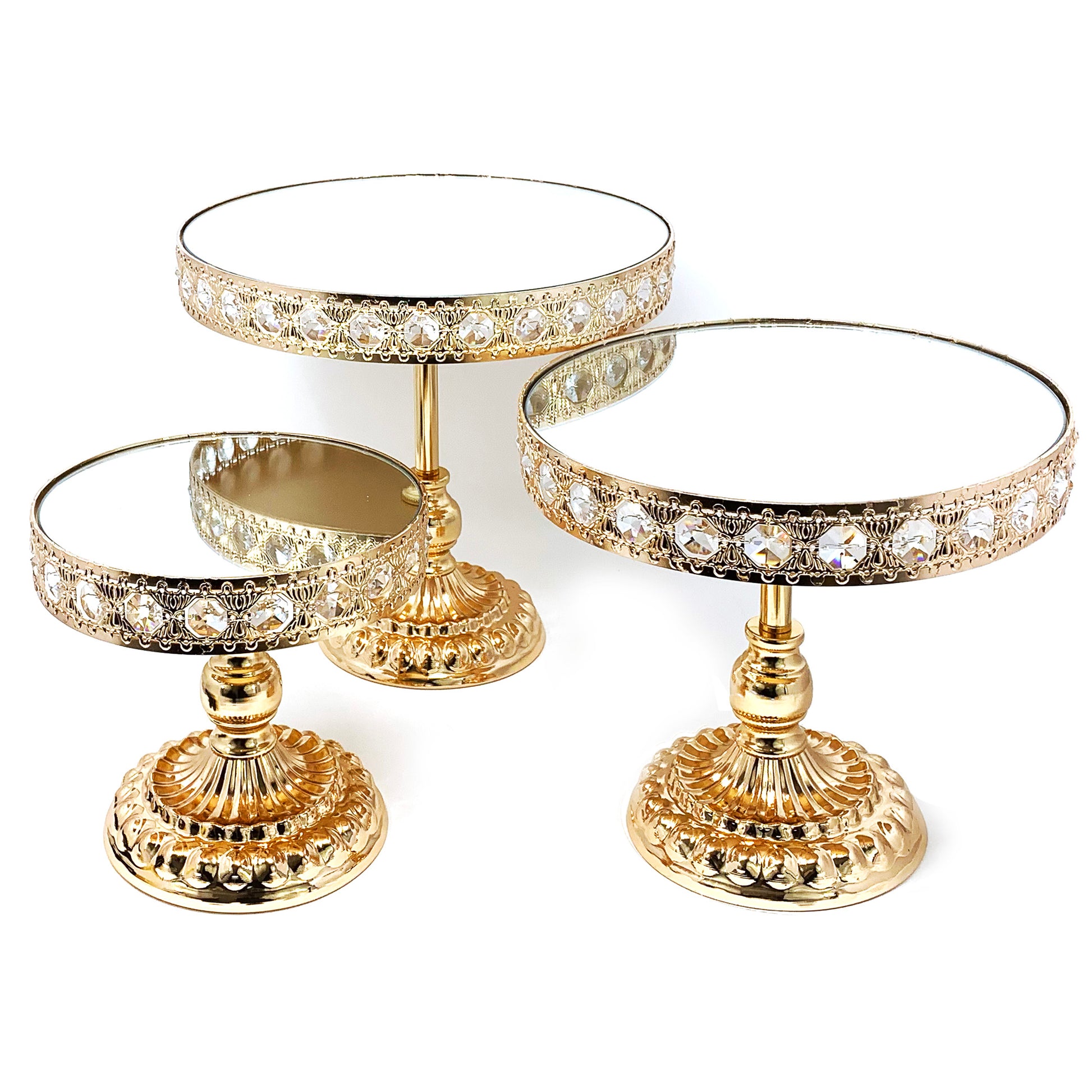 Allgala Crystal Cake Stand 3 Piece Set High Quality Crystal Gold Plated Cake Stand with Mirror Plate