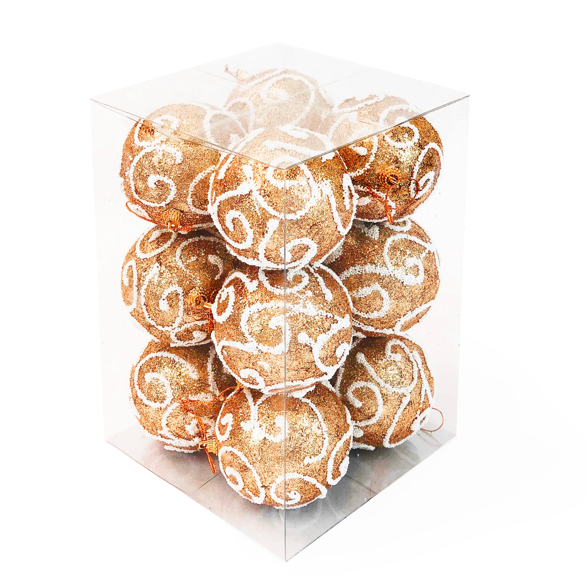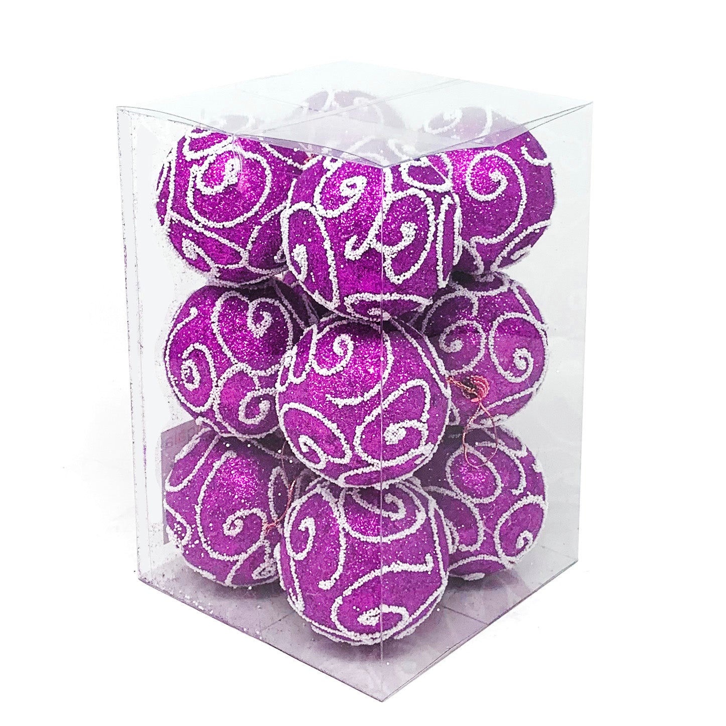 Allgala Christmas Ornament Balls 12 Pack 3 Inch - Glitter Decorated Foam