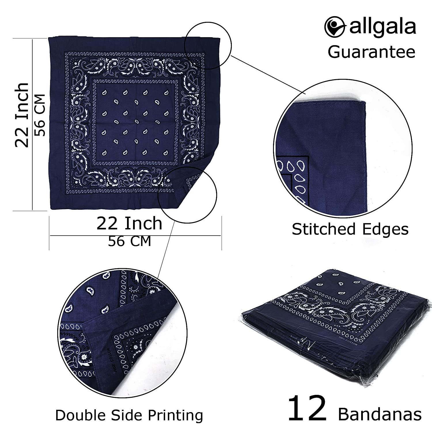 Allgala 12-pc 100% Cotton Bandanas, Paisley Pattern, Navy Blue