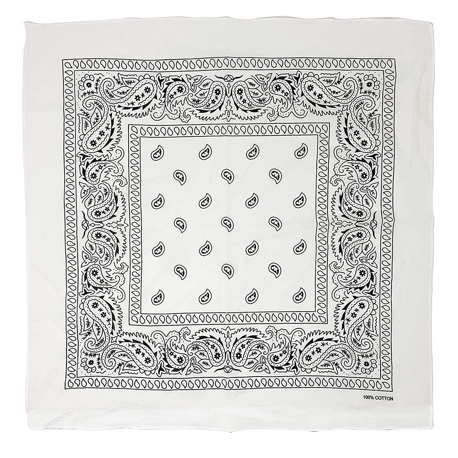 Allgala 12-pc 100% Cotton Bandanas, Paisley Pattern, White