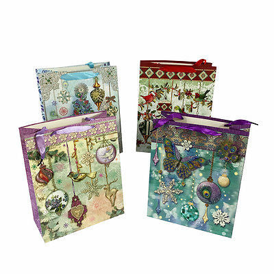 Allgala Gift Bags 12-PC Premium Christmas Gift Bags, glitter, 3 size Available