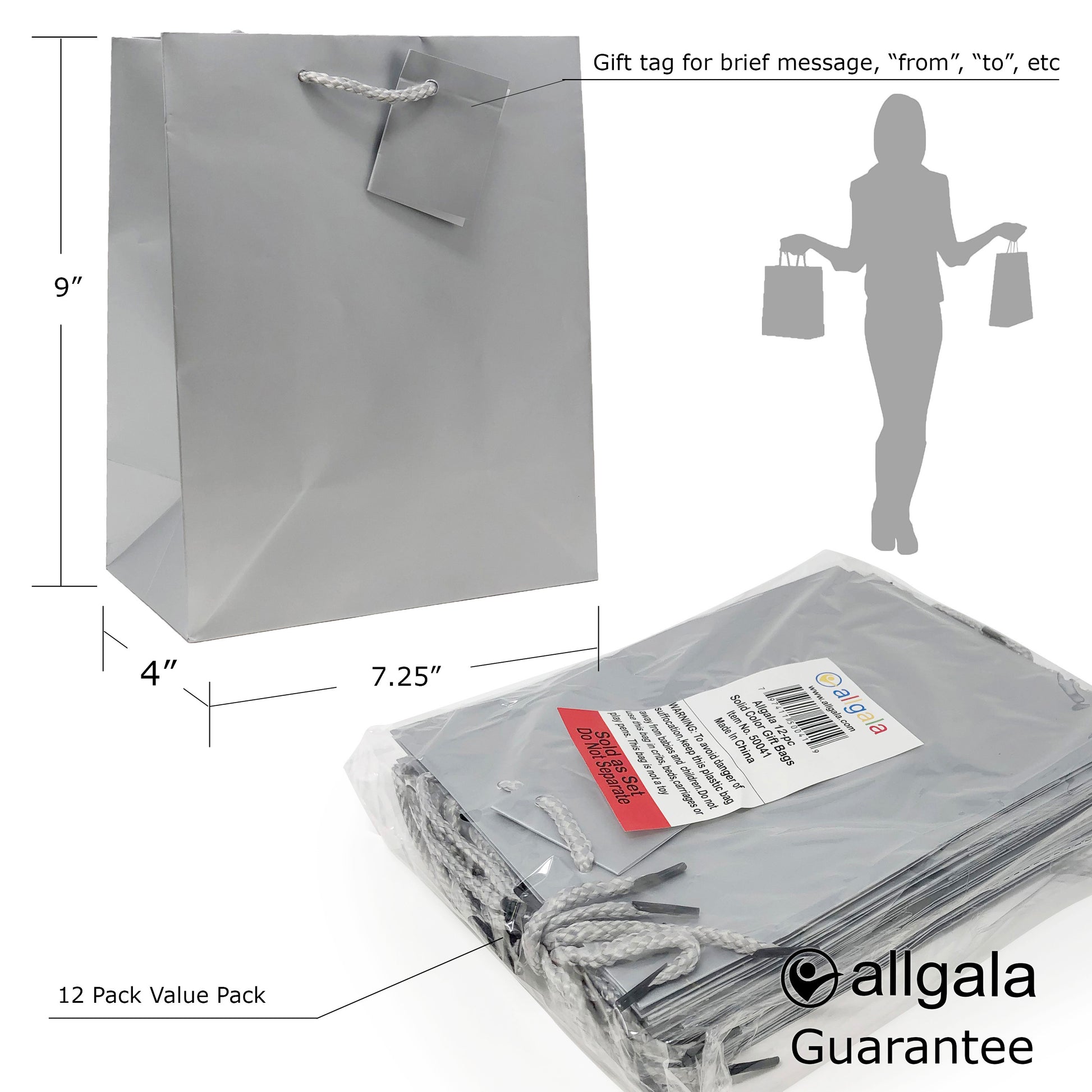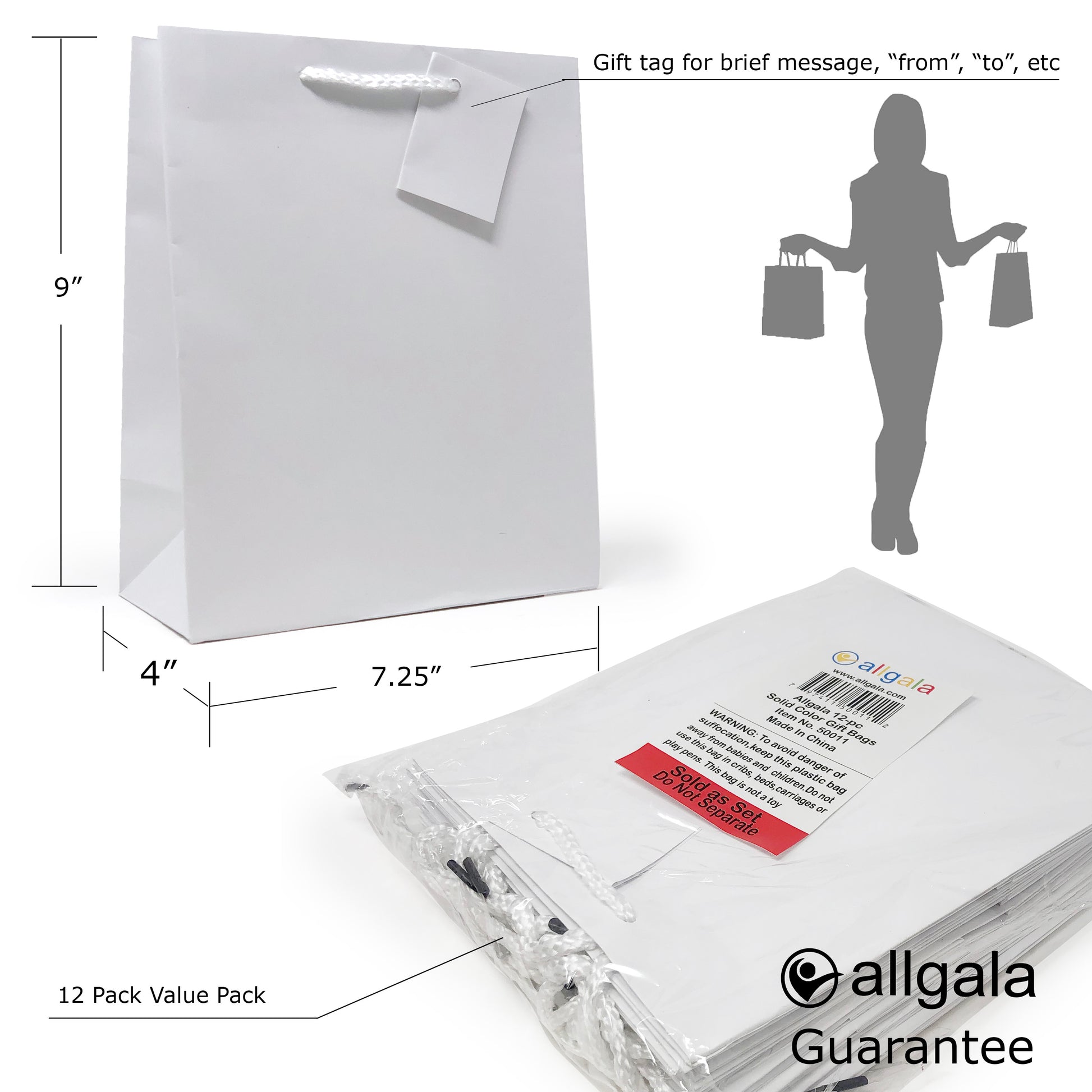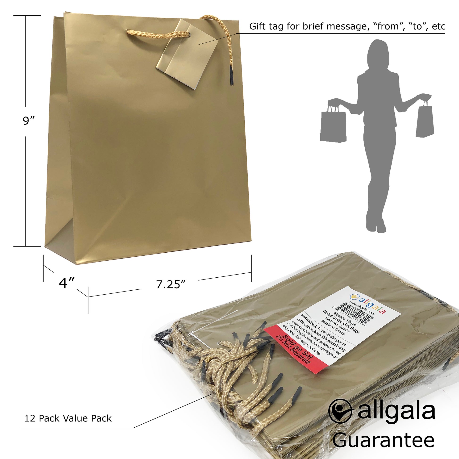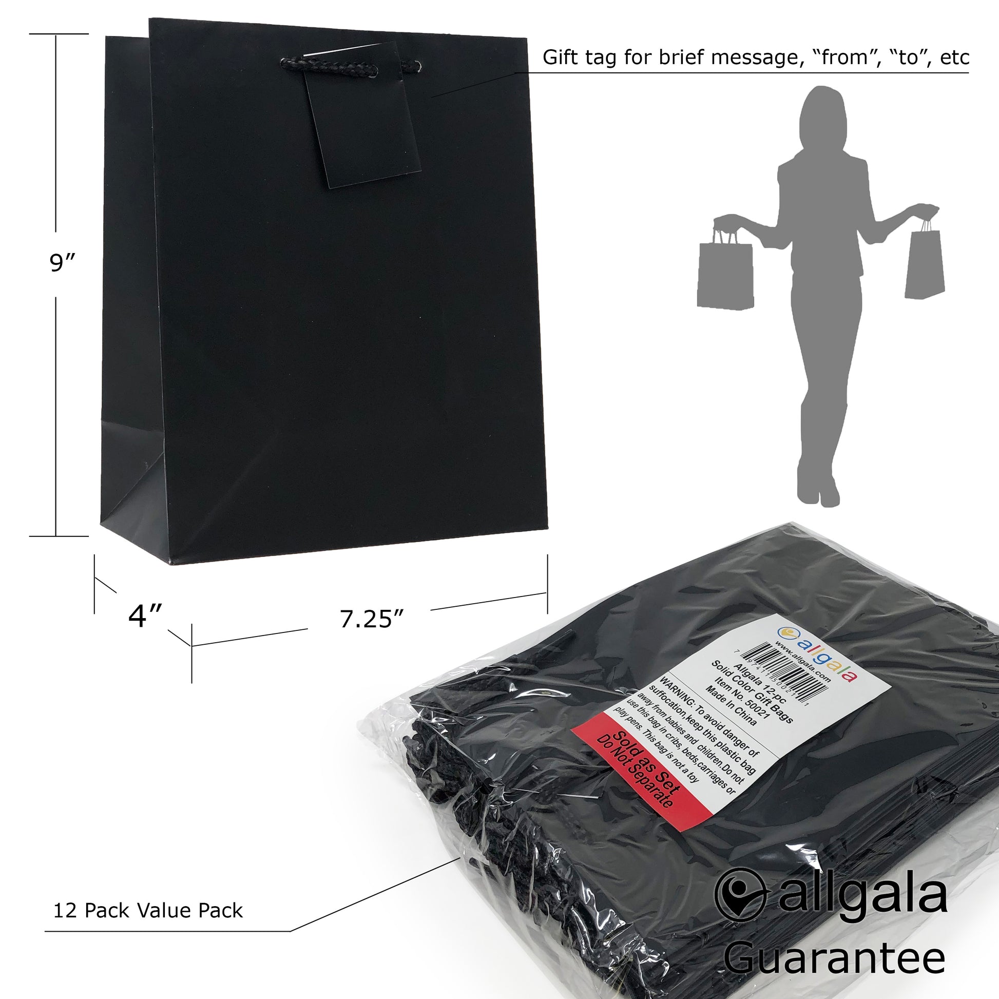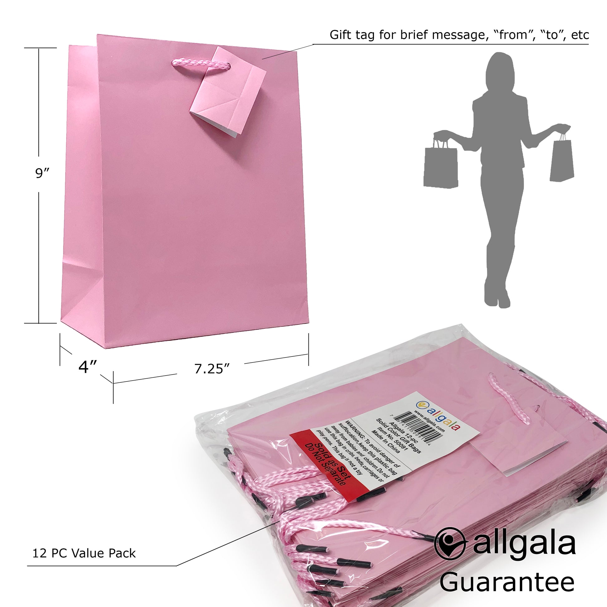 Allgala Gift Bags 12PK Value Premium 9" Medium 157GSM Art Paper Solid Color Paper Gift Bags with Matte Lamination