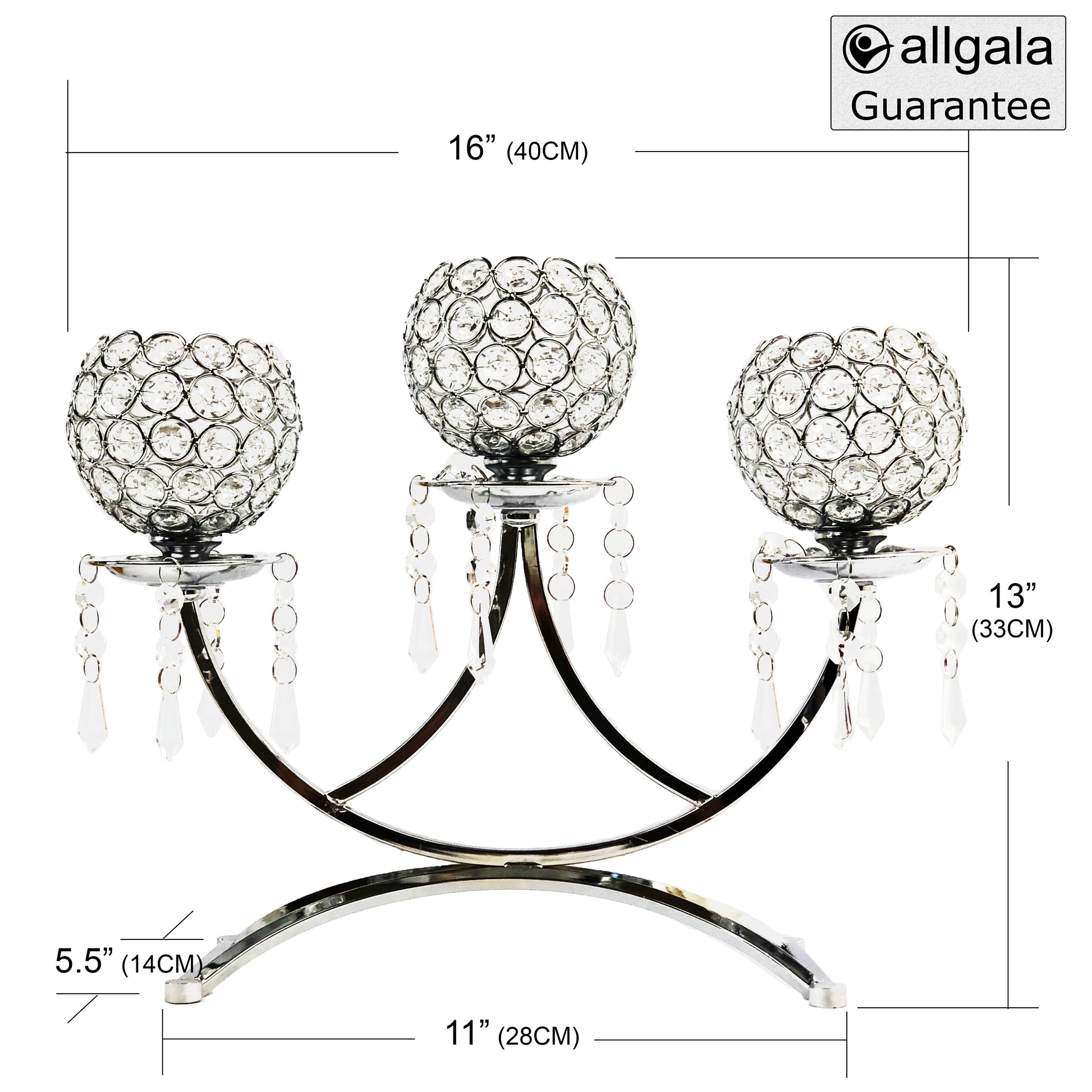 Allgala Candle Holder 3-Arm Bowls Tea-light Votive Crystal Candelabra