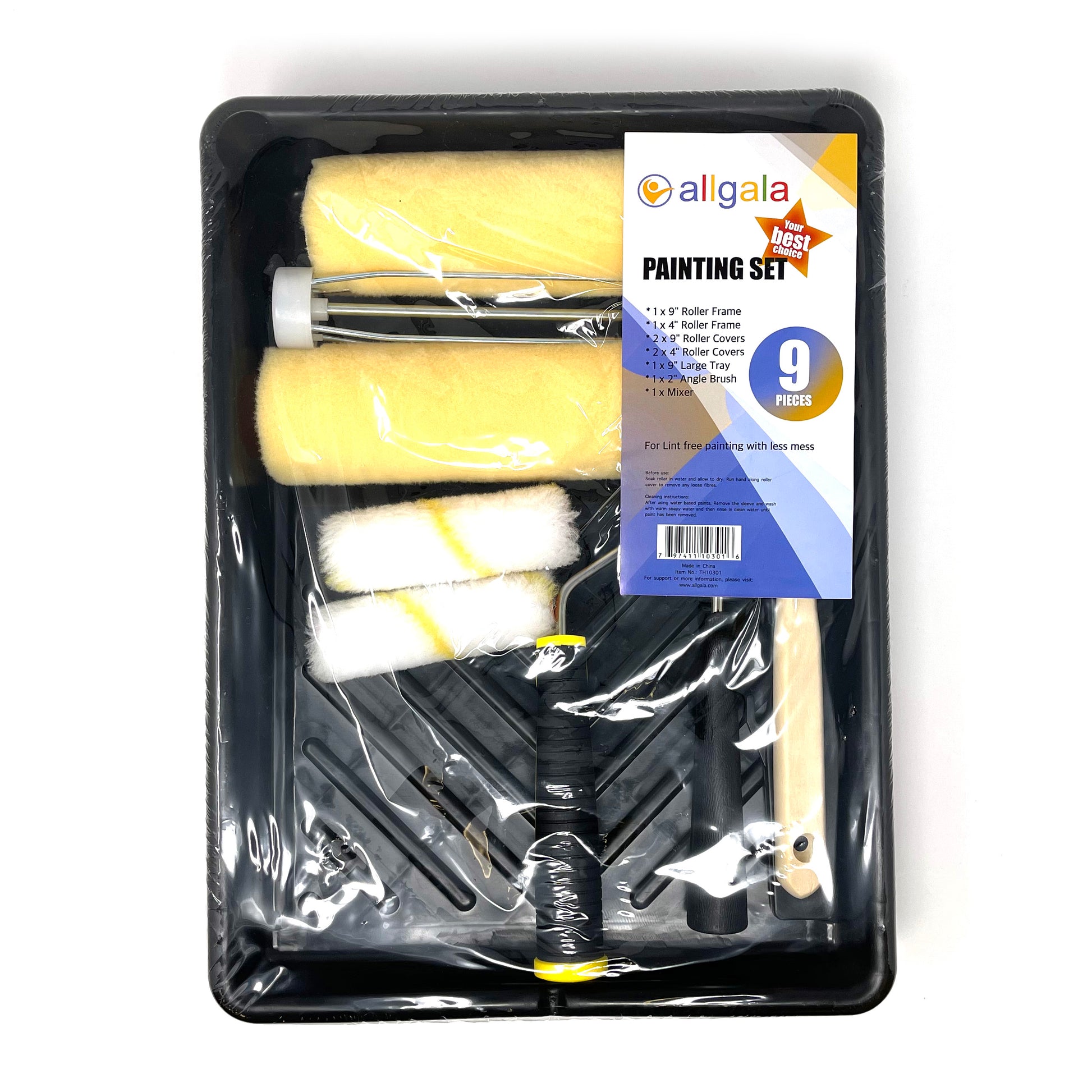 Allgala Paint Kit 9-Piece Lint Free Paint Roller Kit with Roller Frames Covers Brush Mixer and Large Tray - TH10301