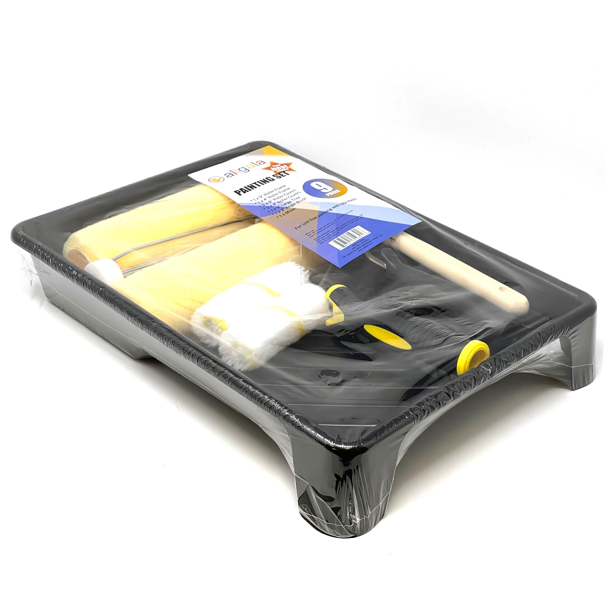- Don't be confused by competitors piece count with cheap and useless add-ons. Our no-nonsense 9-PC Decorating Paint Roller Set includes: 2x 9"*1-1/2" Premium Polyester Yellow Color Roller Cover; 1x 9" Paint Tray 1x 9"Roller Frame, A18- 2 Color Soft Handle; 2x 4" Polyester Mini Roller Refill; 1x 2" Angle Cut Paint Brush; 1x 4"X10" Mini Roller Frame, A3 Black Handle; 1x Black Mixer