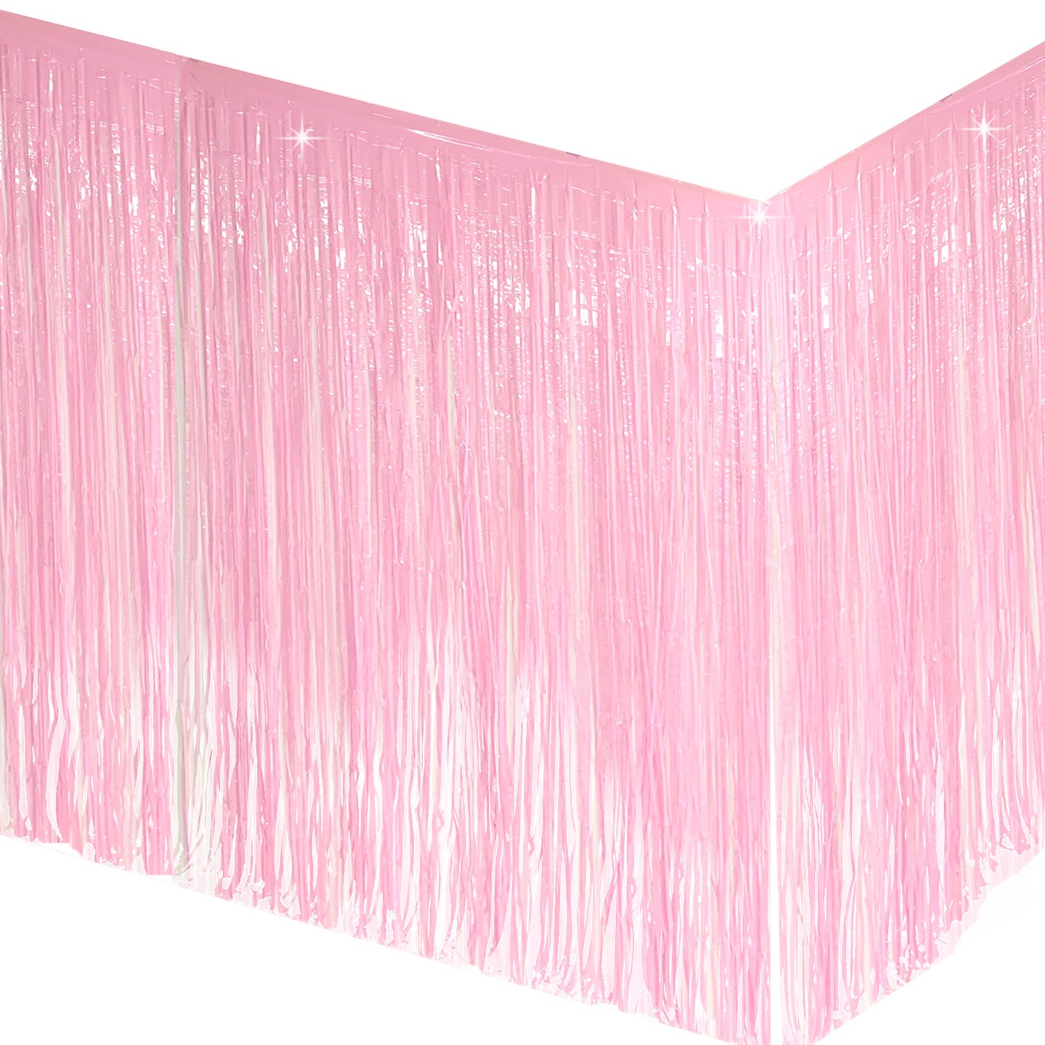 Allgala Backdrop 2-Pack 29x108 Inch Metallic Foil Fringe Tinsel Table Skirts for Party Event Decoraton