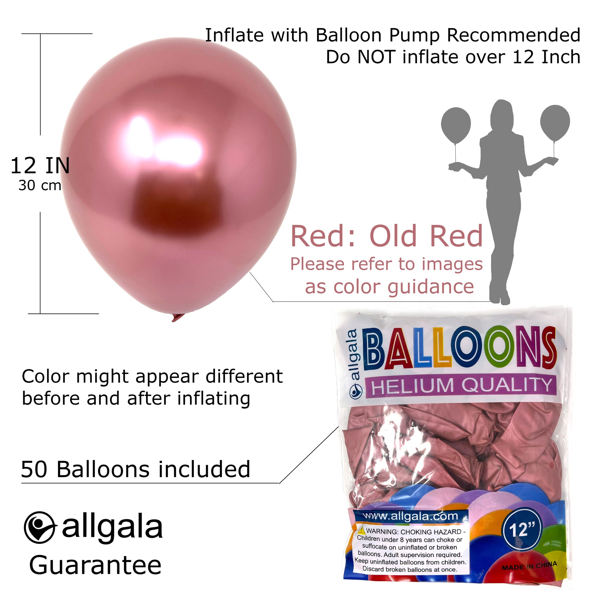Allgala Balloons 12" 50 Count 2.8g Premium Heavy Metallic Chrome Latex Balloons