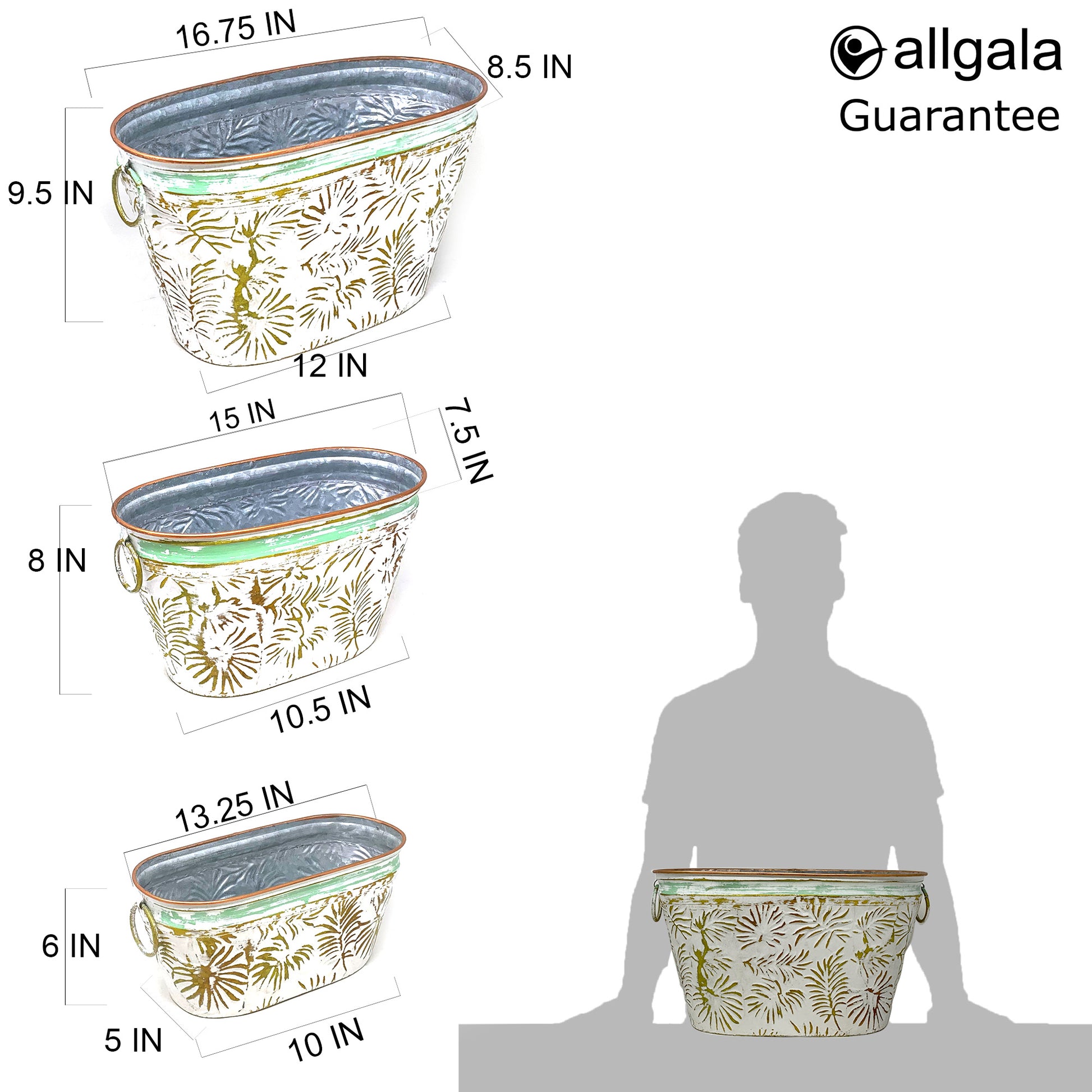 Allgala Planter Pot 3-PC Set Gold Leaf Design Oval Planter Pots
