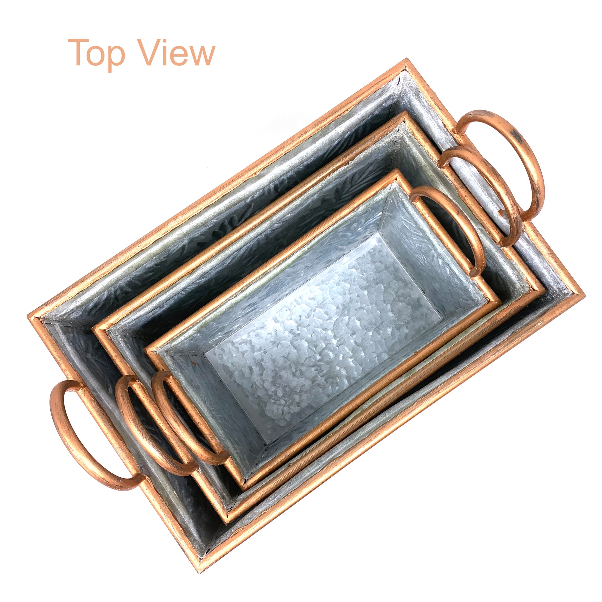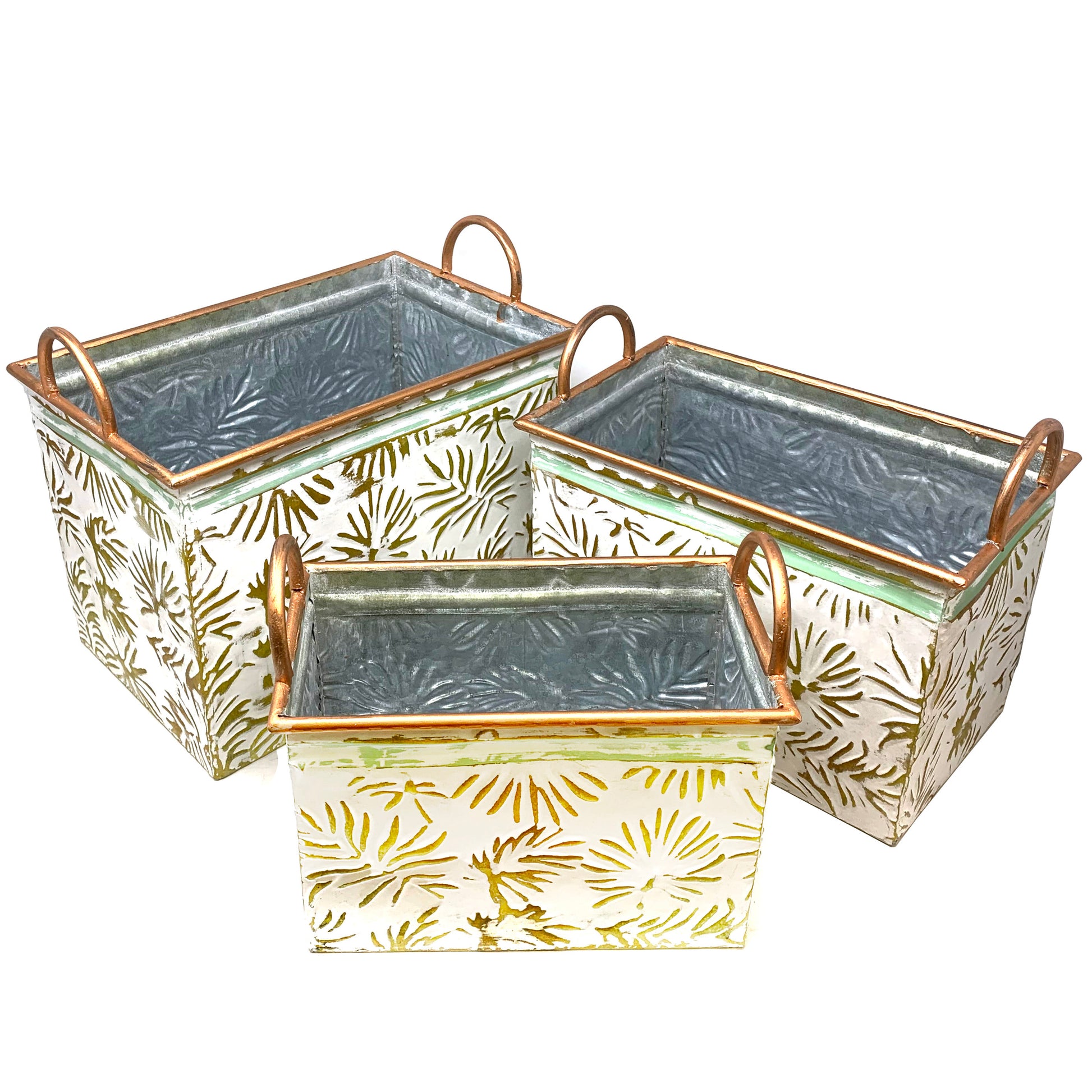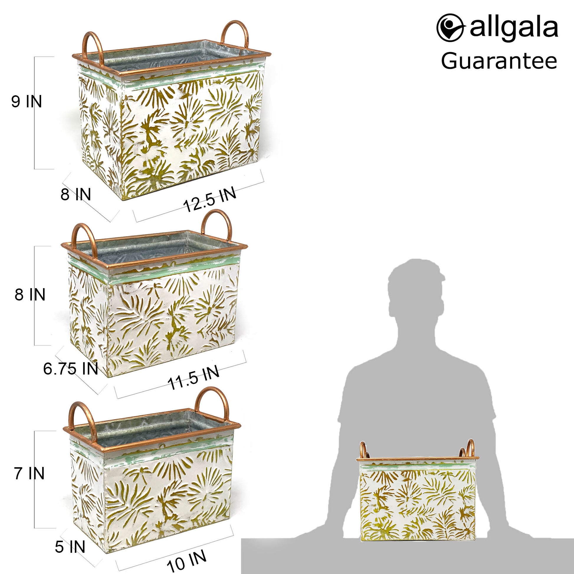 Allgala Planter Pot 3-PC Set Gold Leaf Design Rectangle Planter Pots