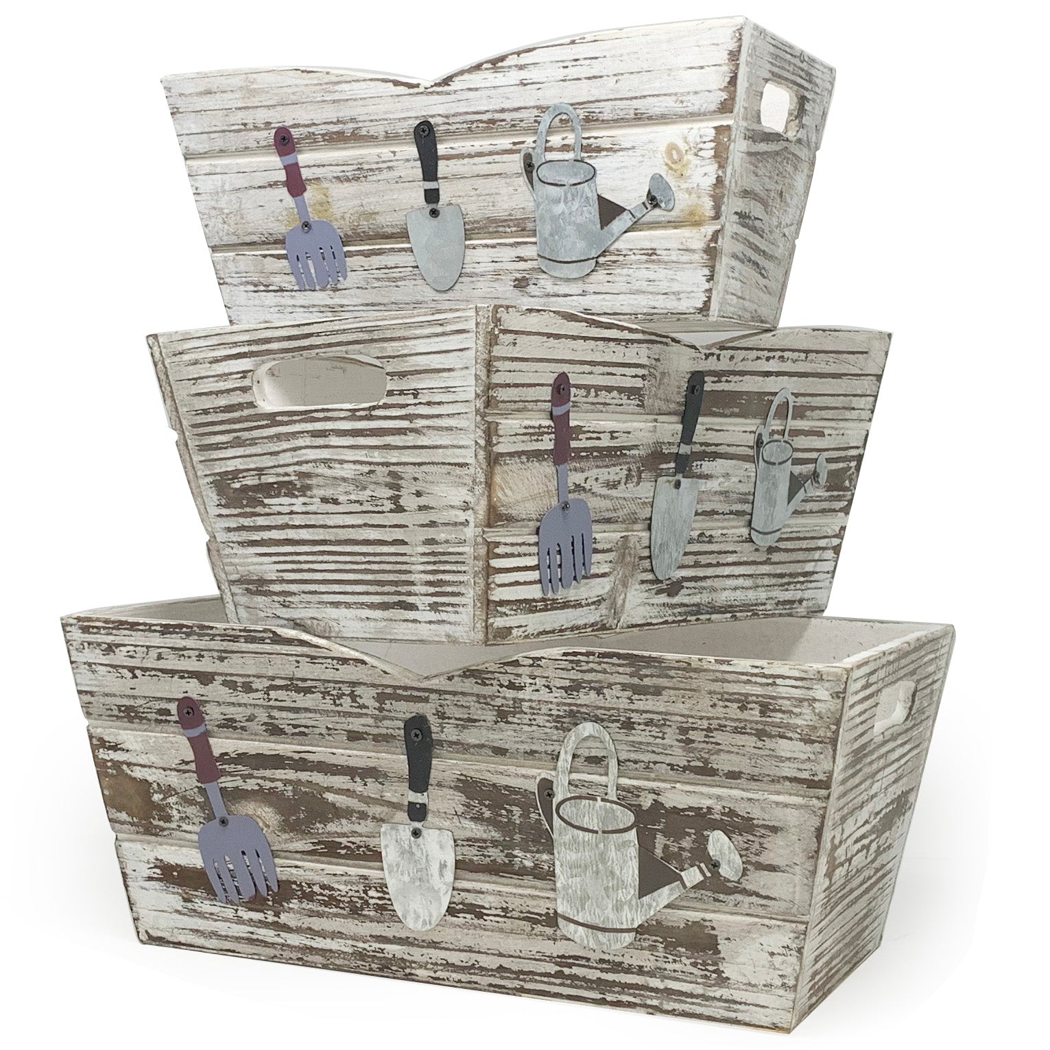 Allgala Planter Pot 3-PC Set Wooden Boxes Planter Trough for Flower/Storage/Display Boxes