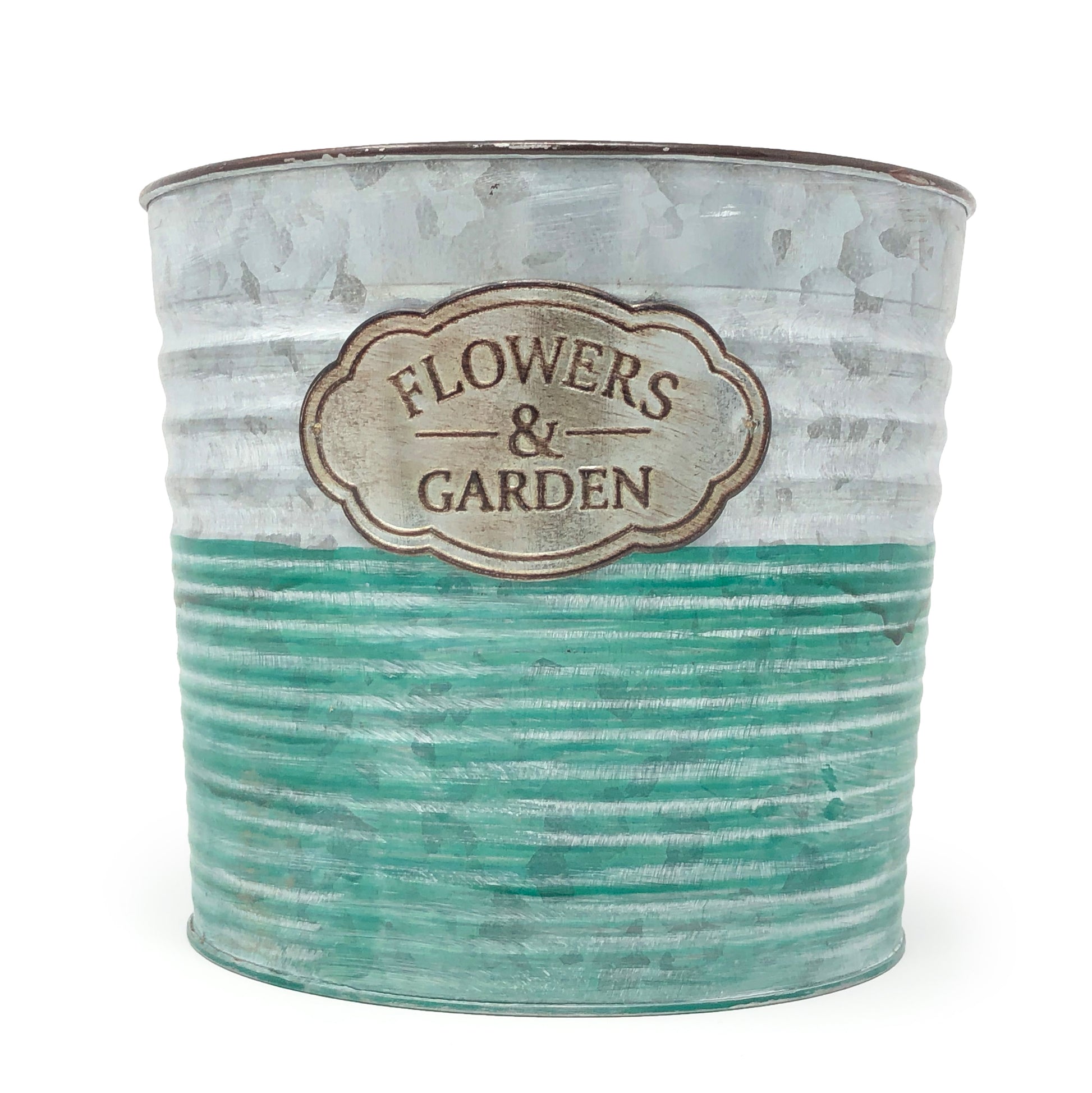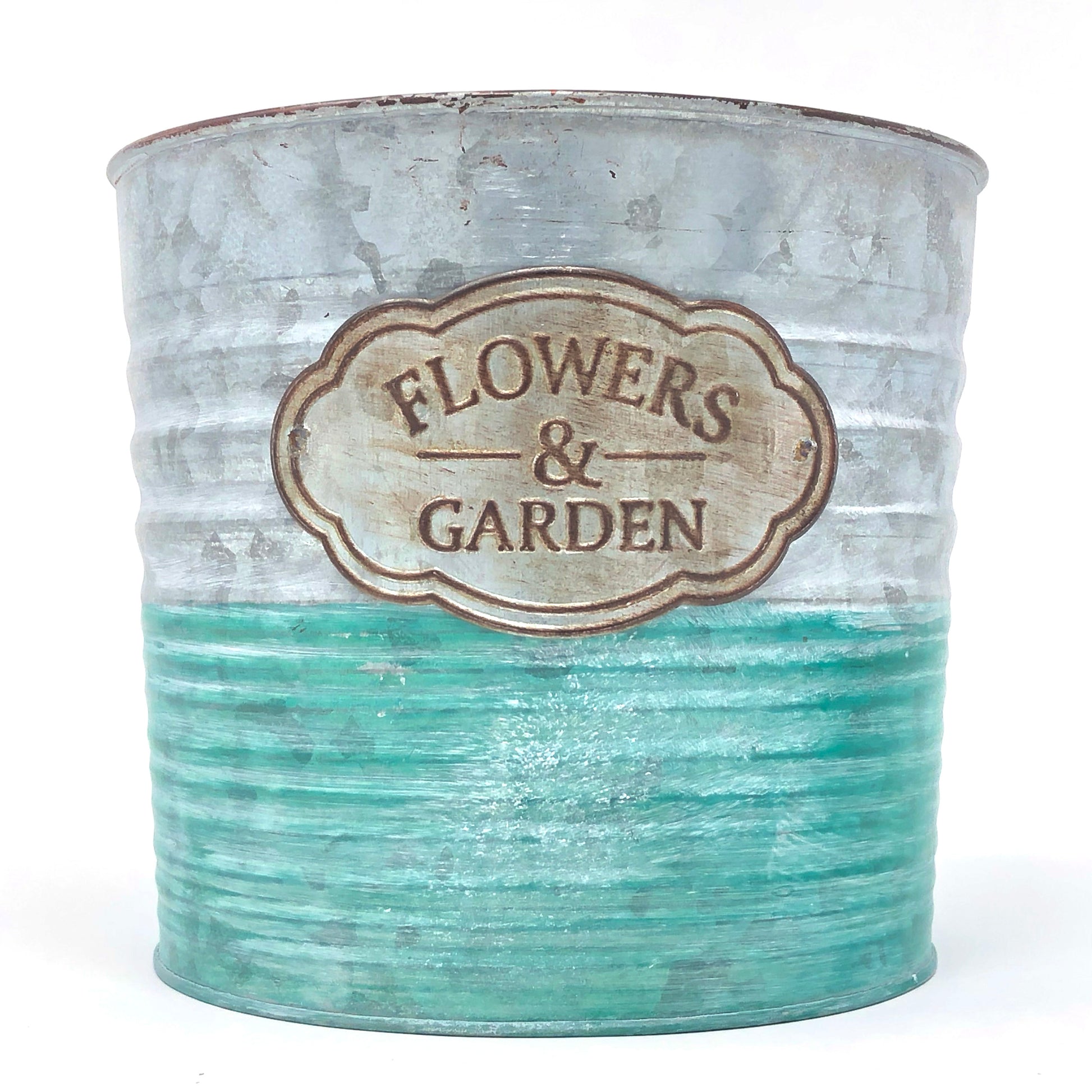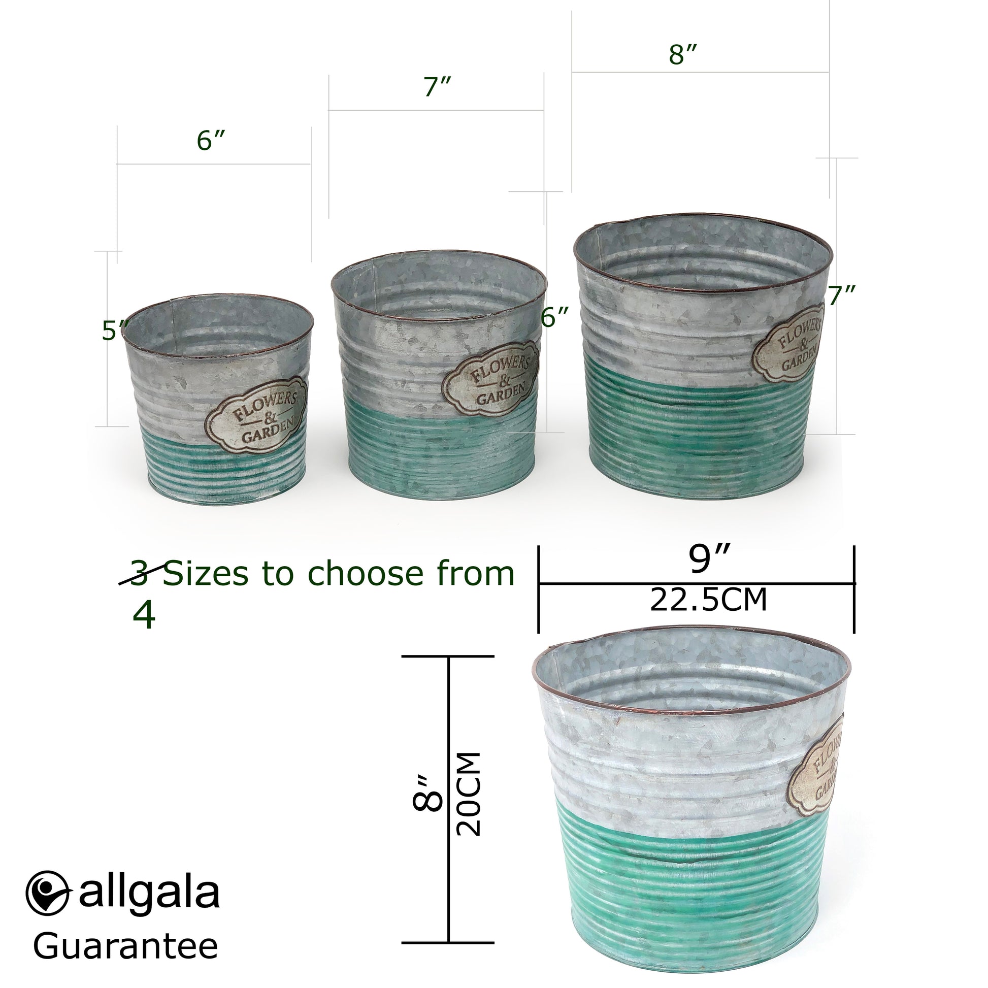 Allgala Planter Pot Galvanized Round Planter Pot Indoor and Outdoor Decoration