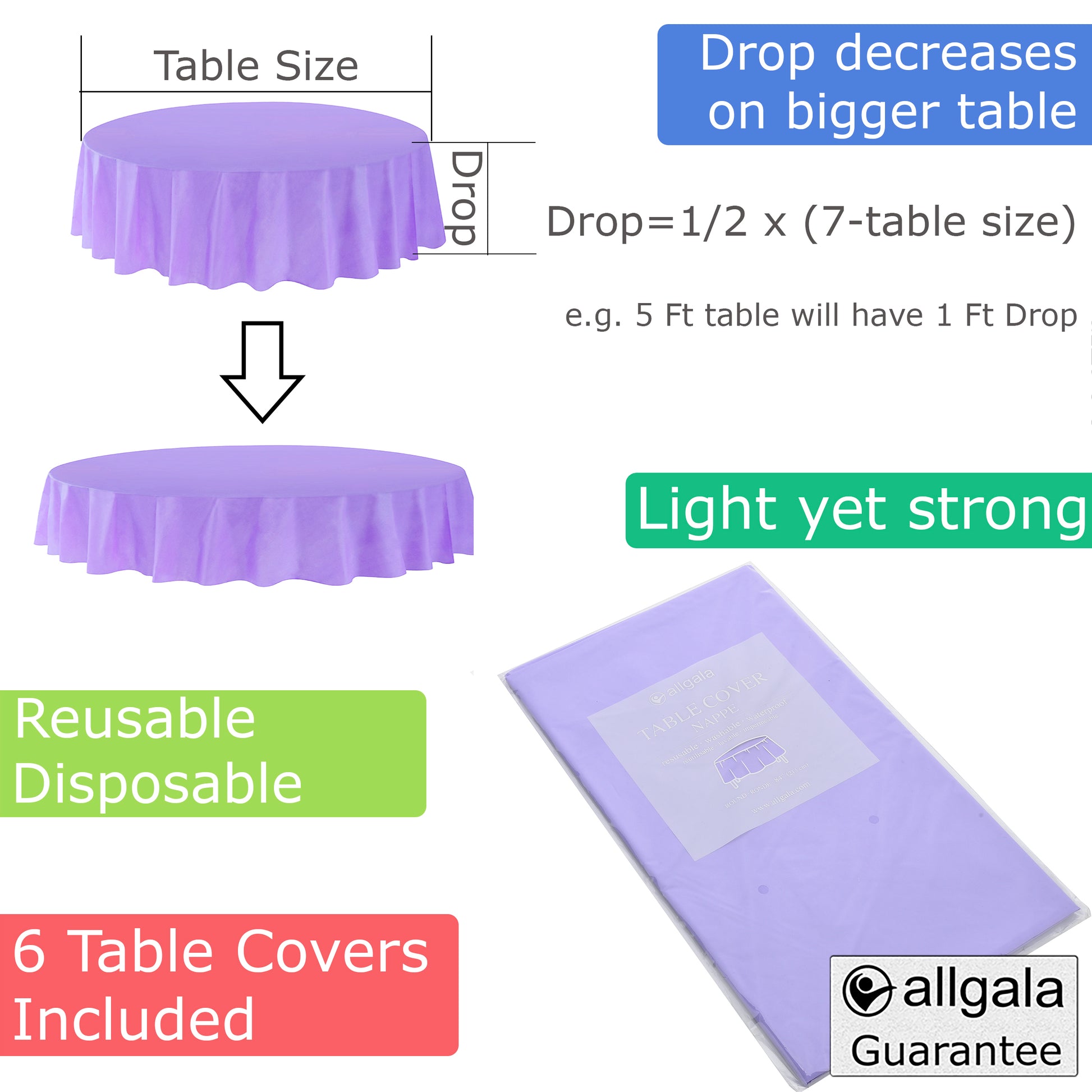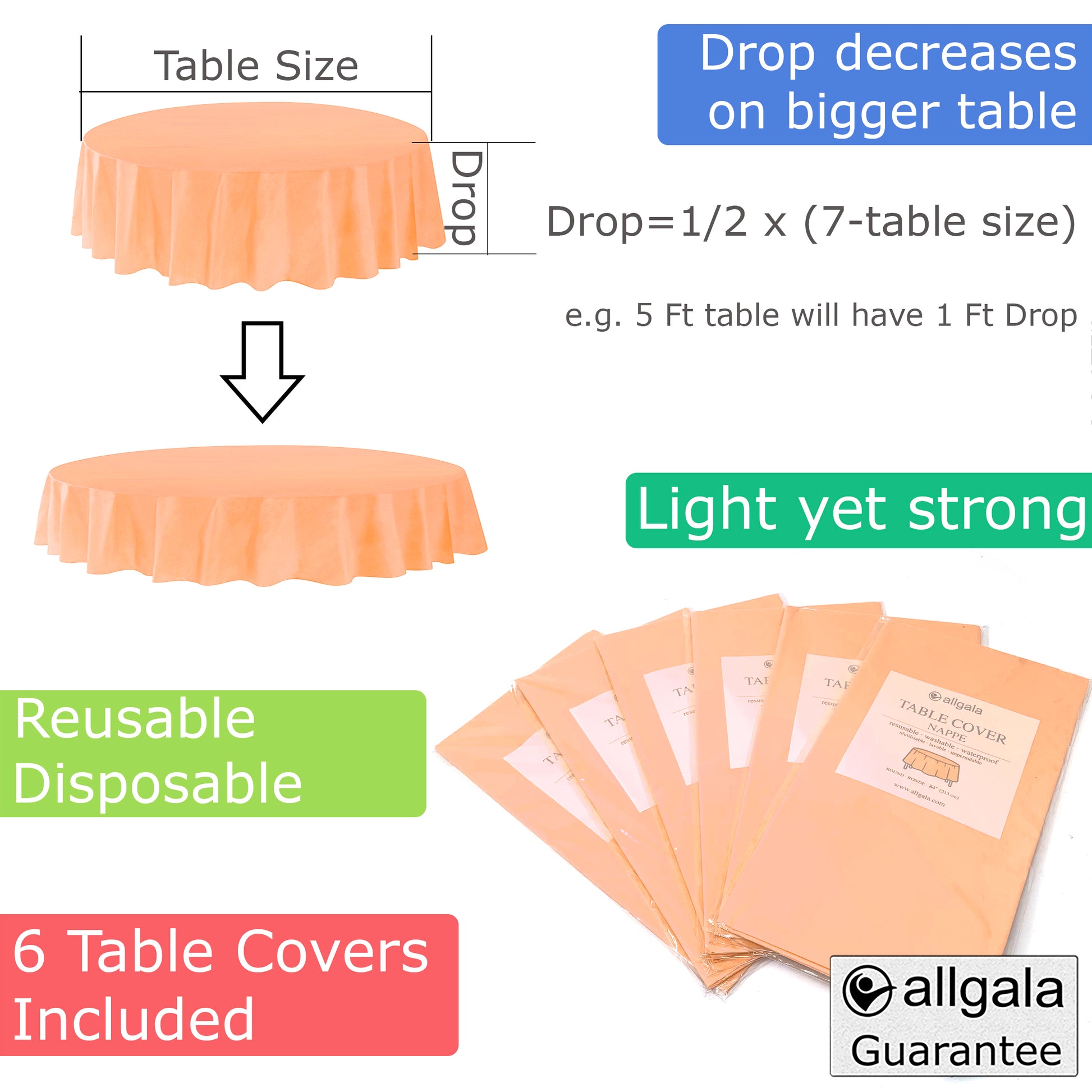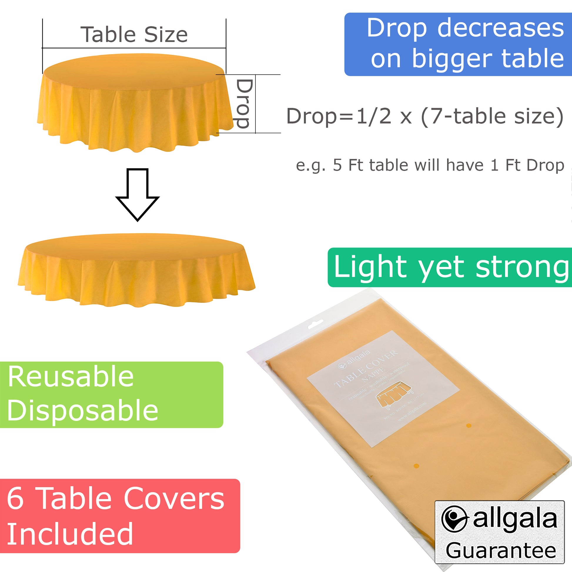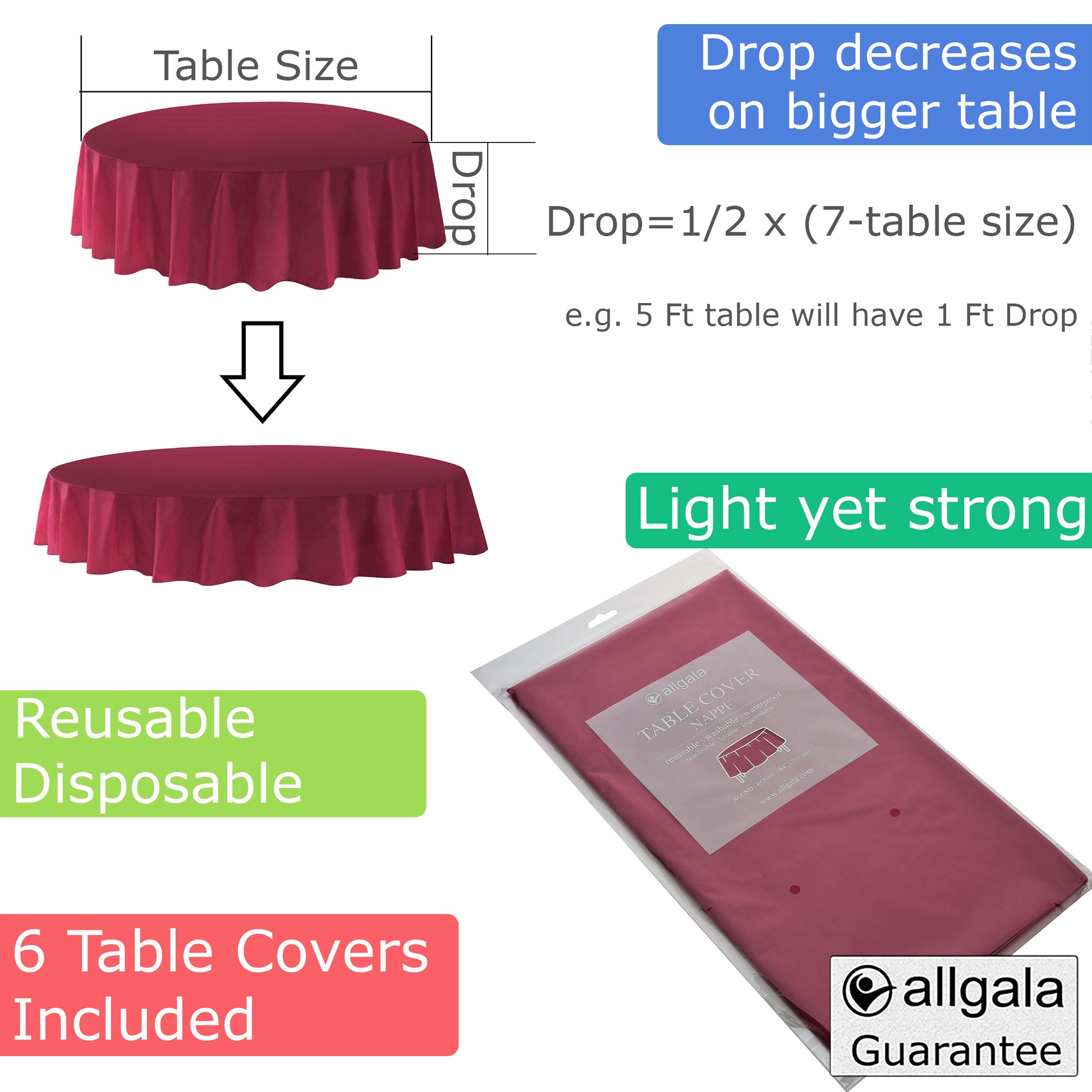Allgala Table Cover 6-PK Premium Medium Duty Disposable 84" Round Plastic Tablecloth (Various Color Available)