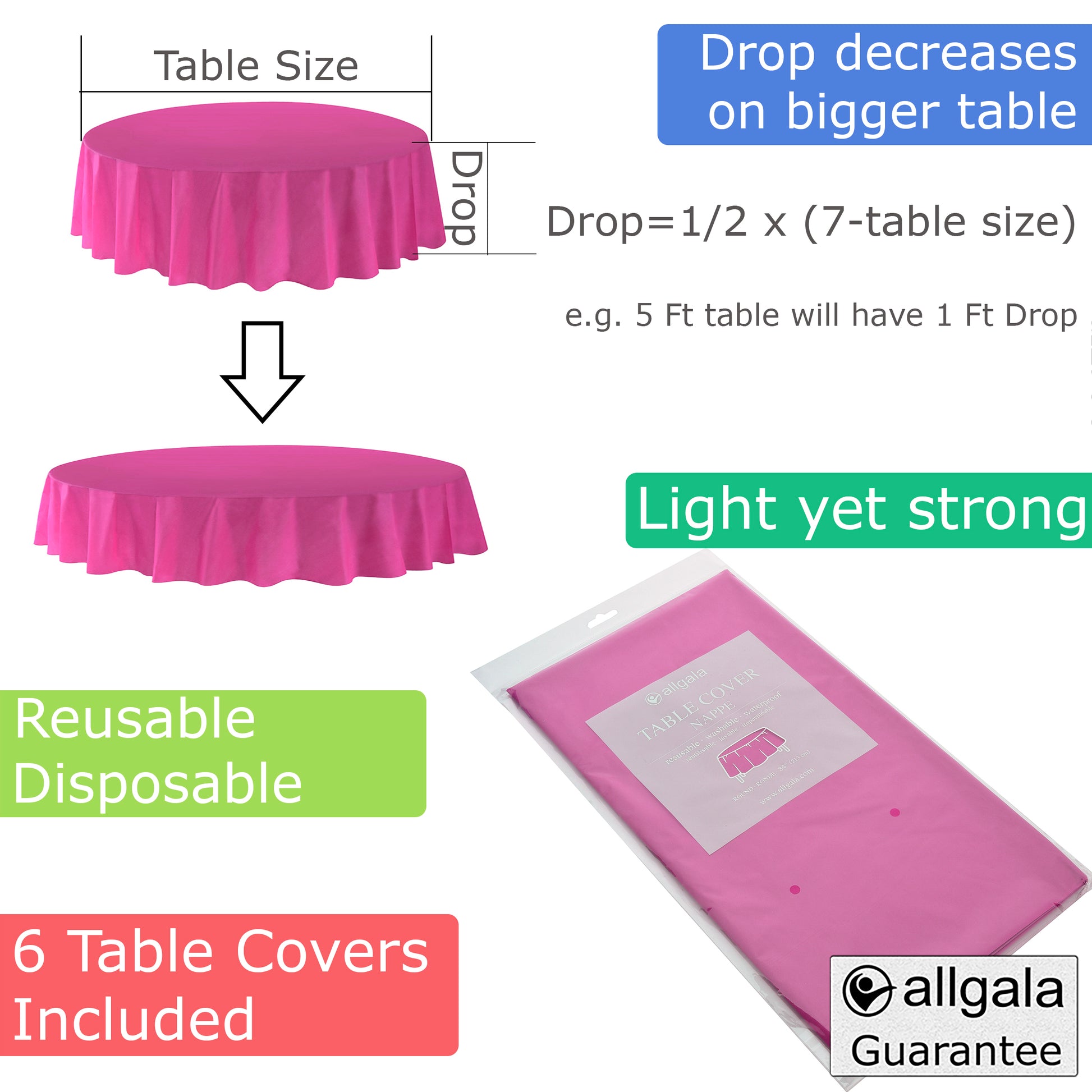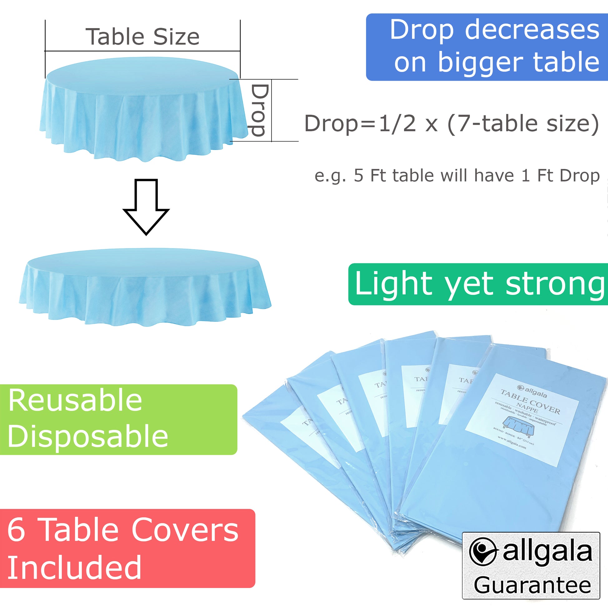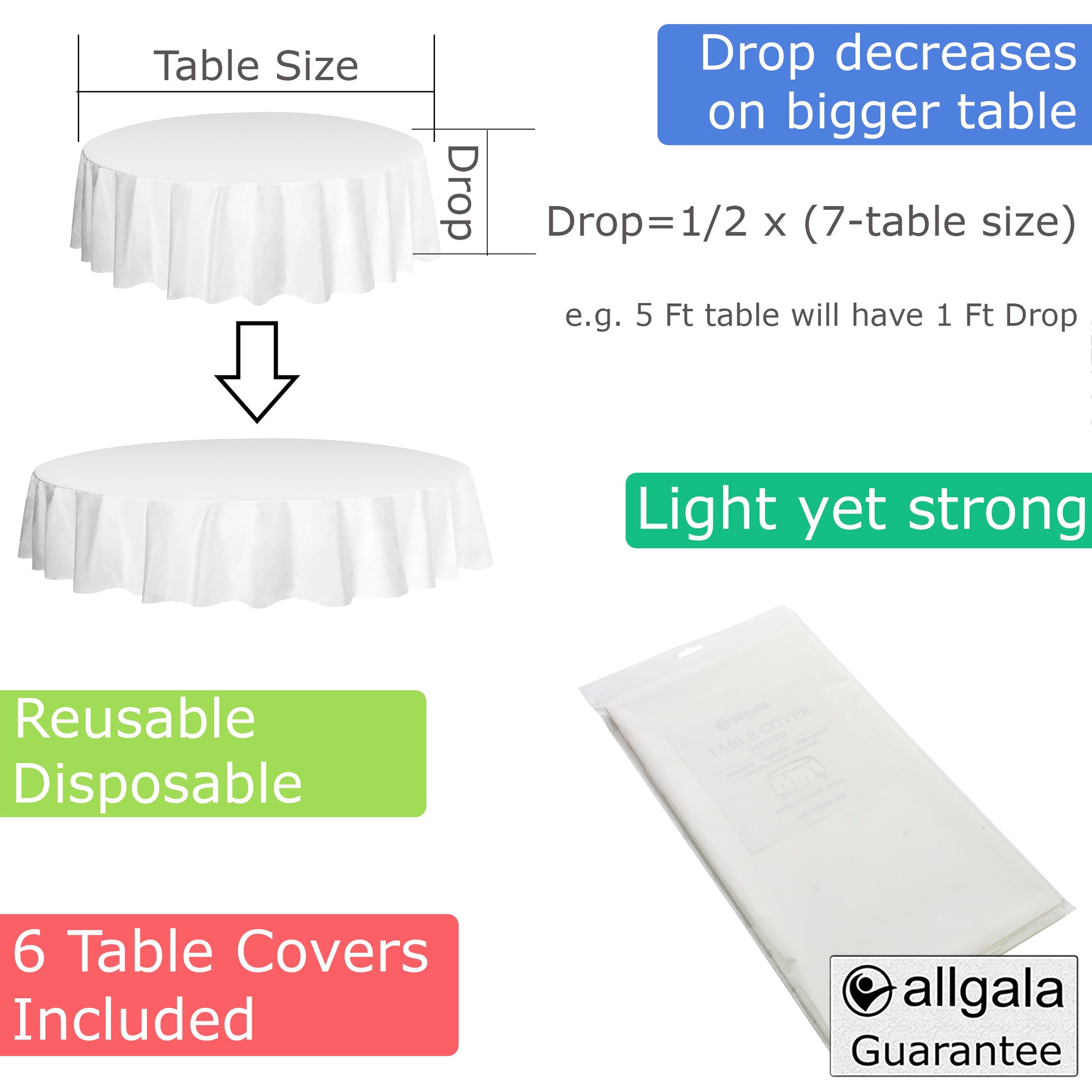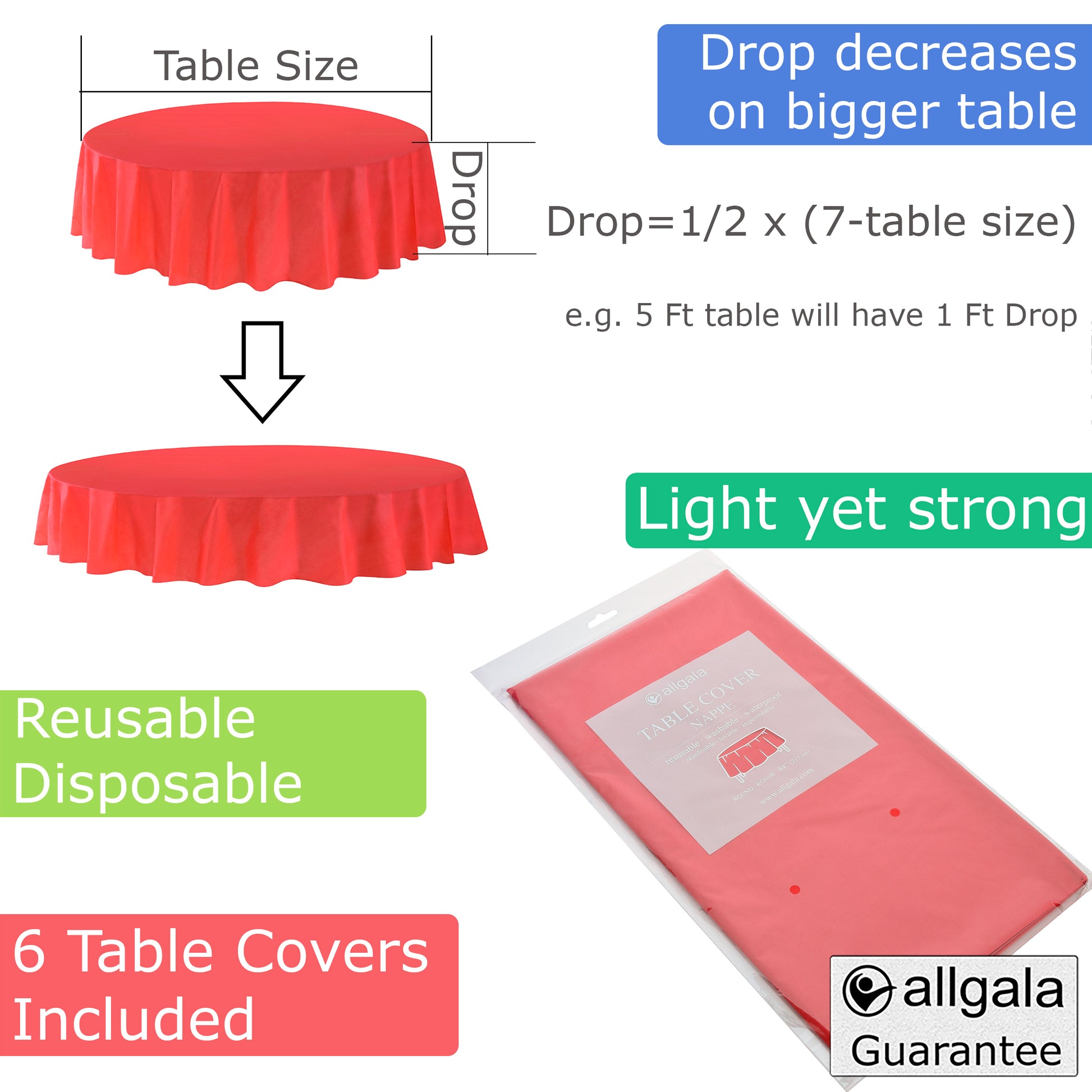 Allgala Table Cover 6-PK Premium Medium Duty Disposable 84" Round Plastic Tablecloth (Various Color Available)