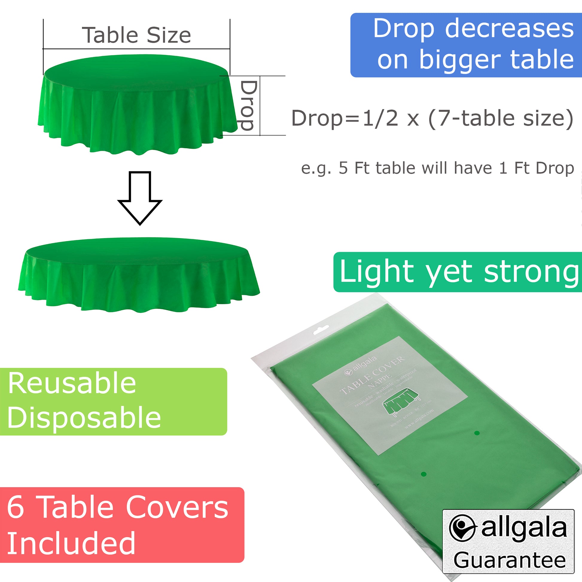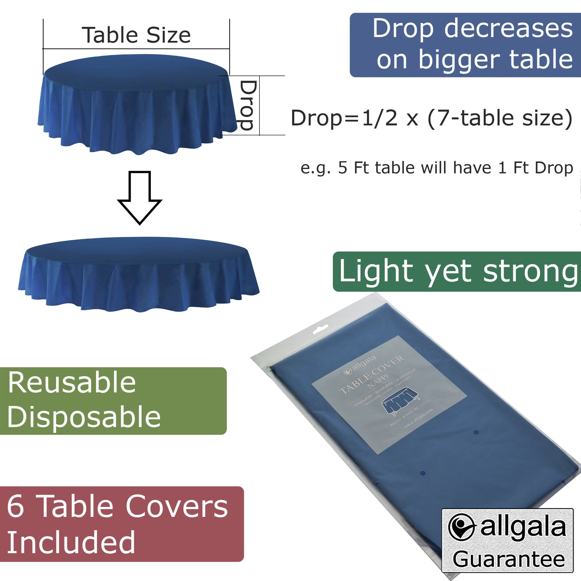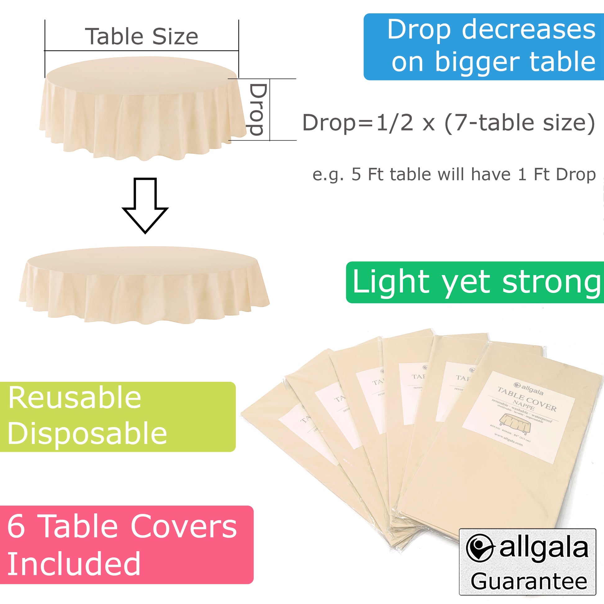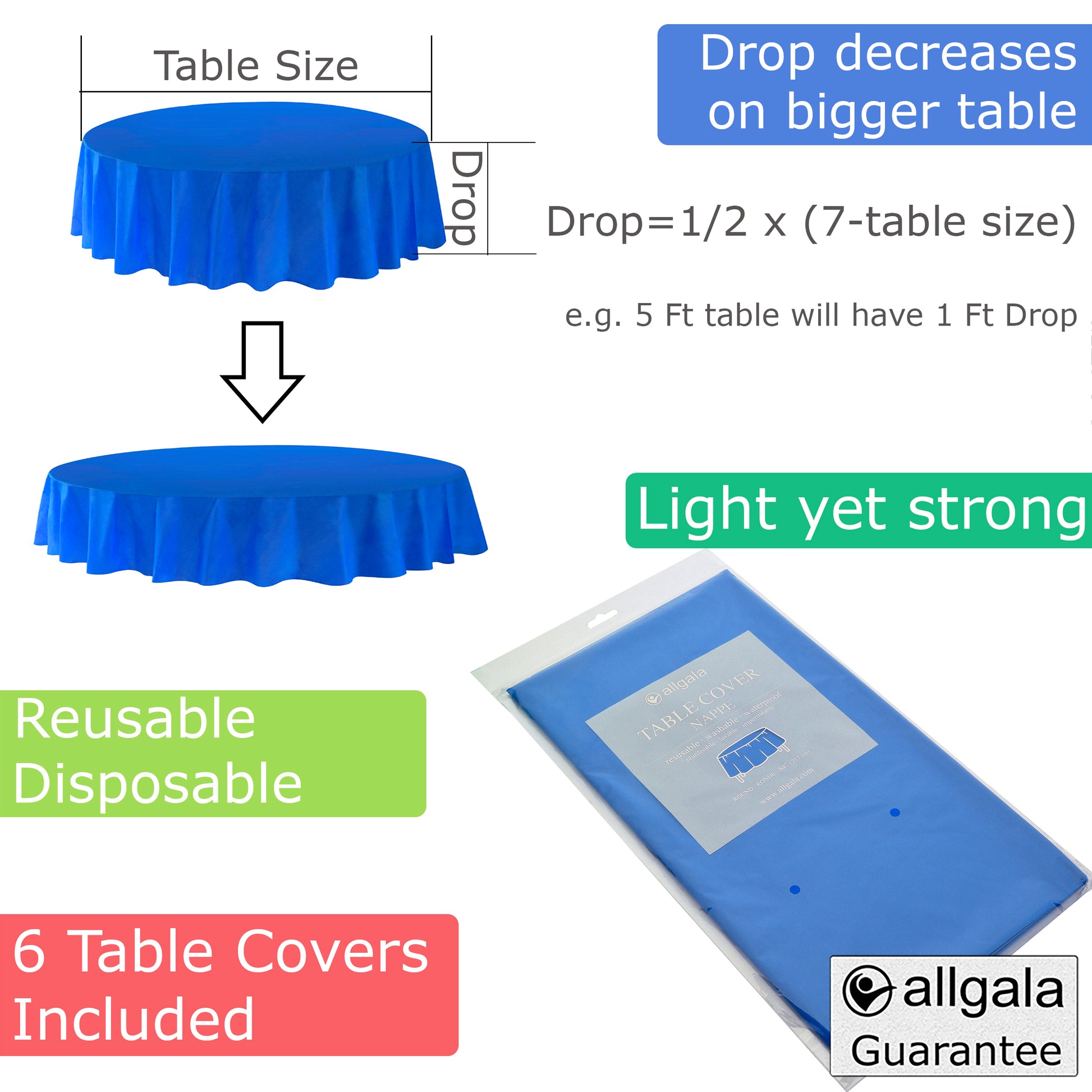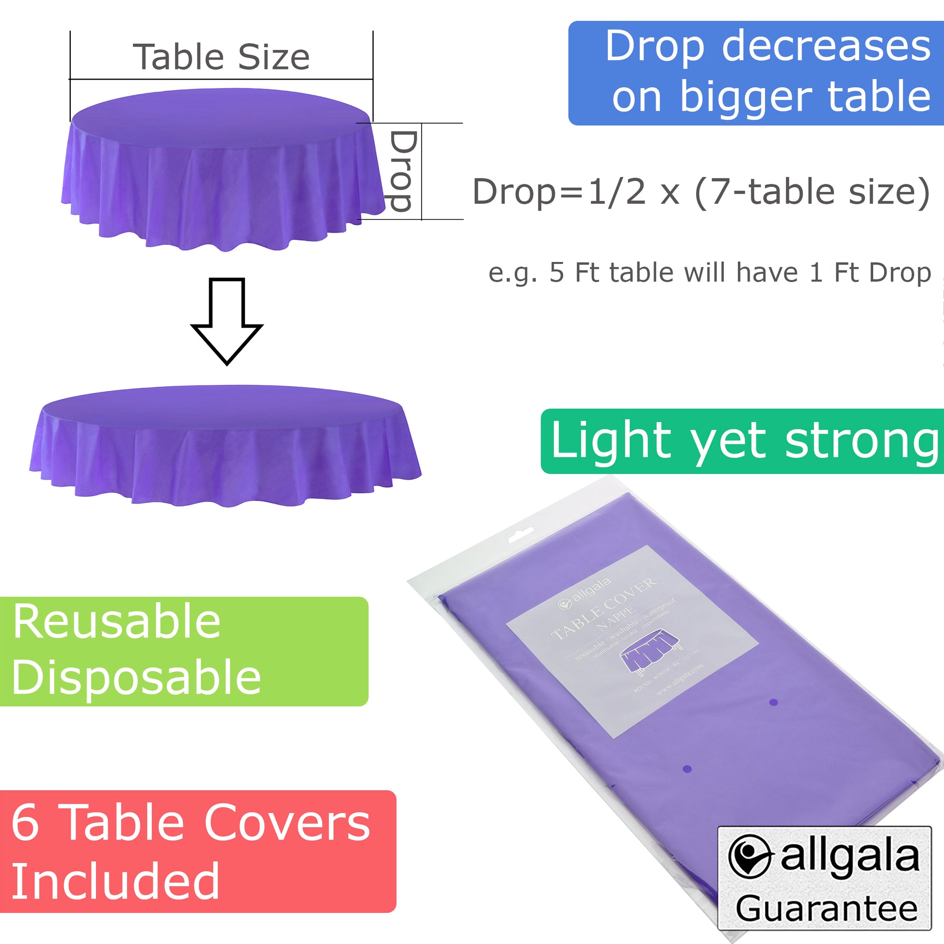 Allgala Table Cover 6-PK Premium Medium Duty Disposable 84" Round Plastic Tablecloth (Various Color Available)