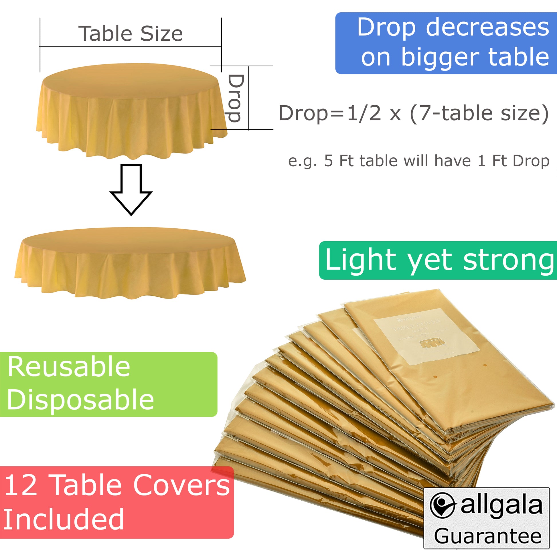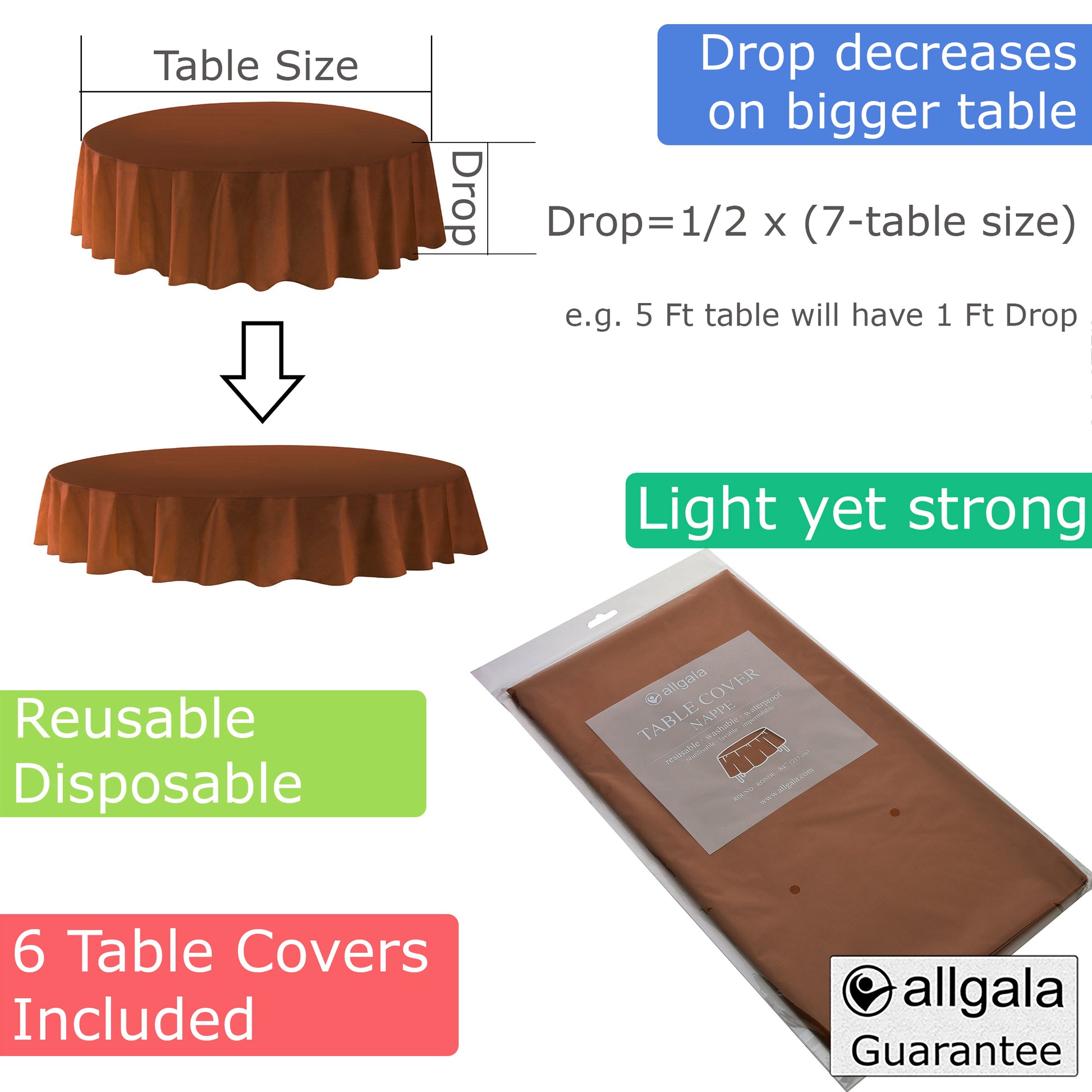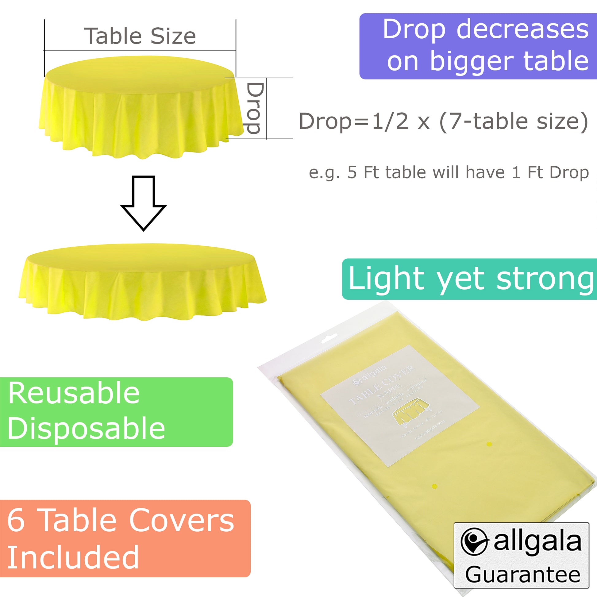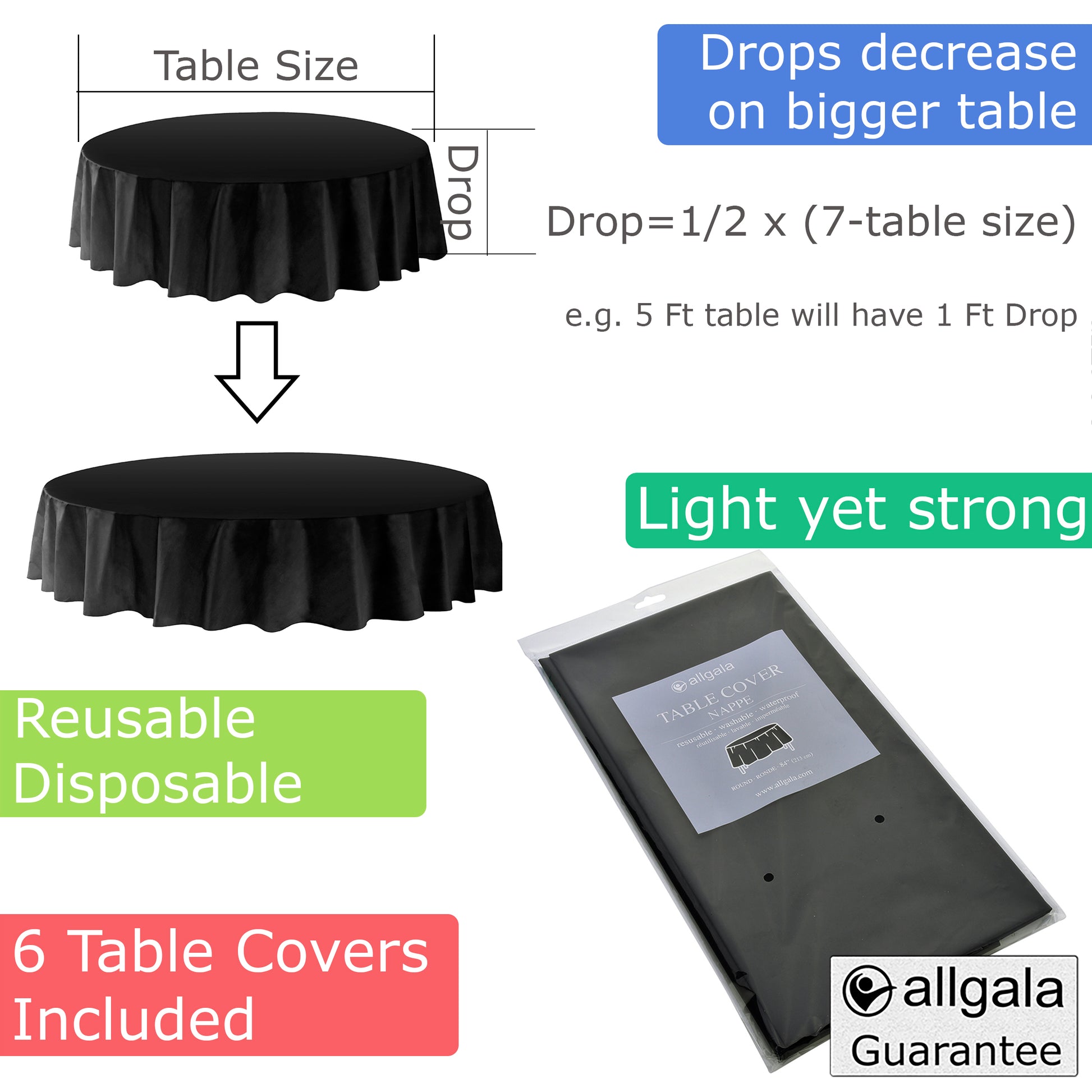 Allgala Table Cover 6-PK Premium Medium Duty Disposable 84" Round Plastic Tablecloth (Various Color Available)