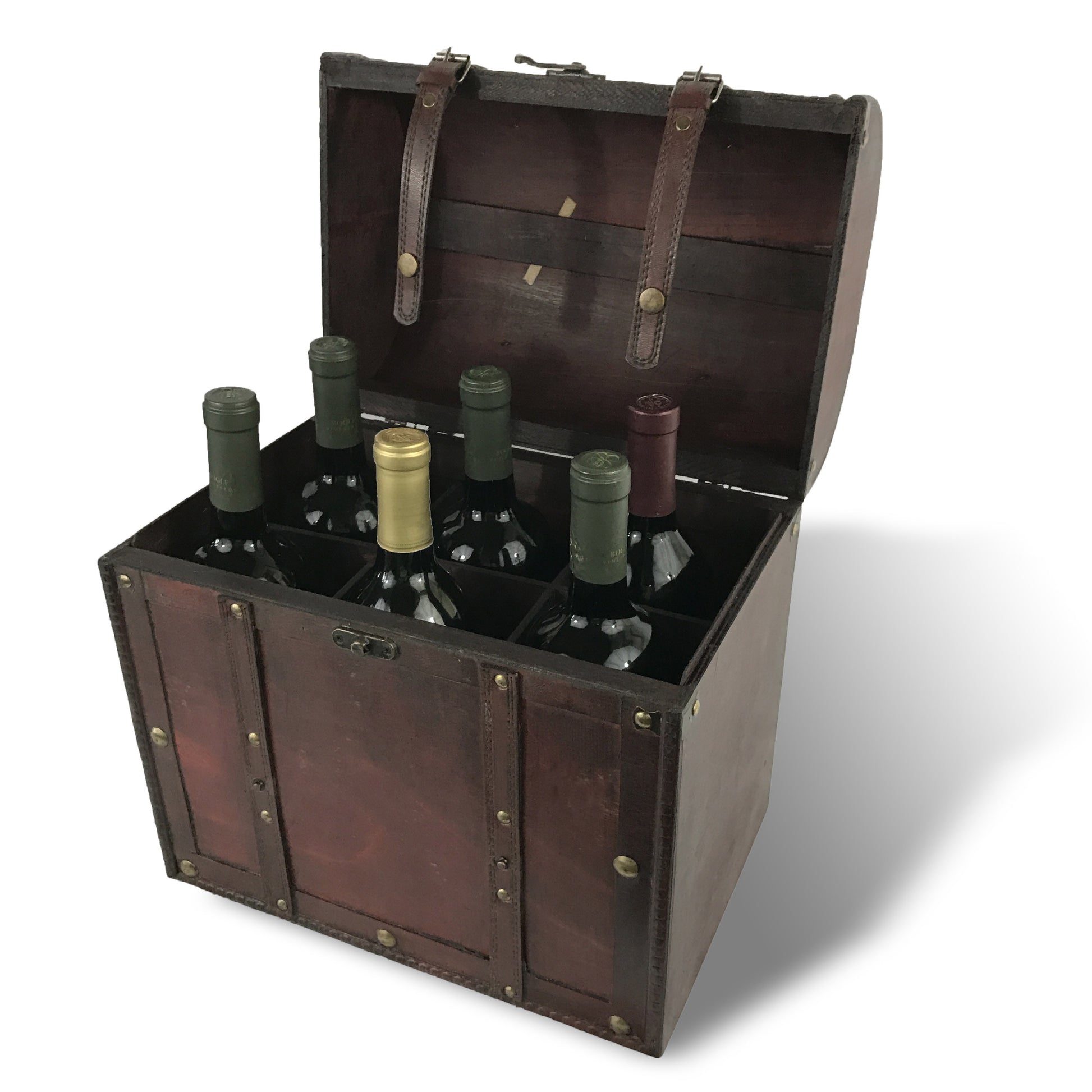Allgala Wooden Wine 6-Bottle Chest with Antique Finish