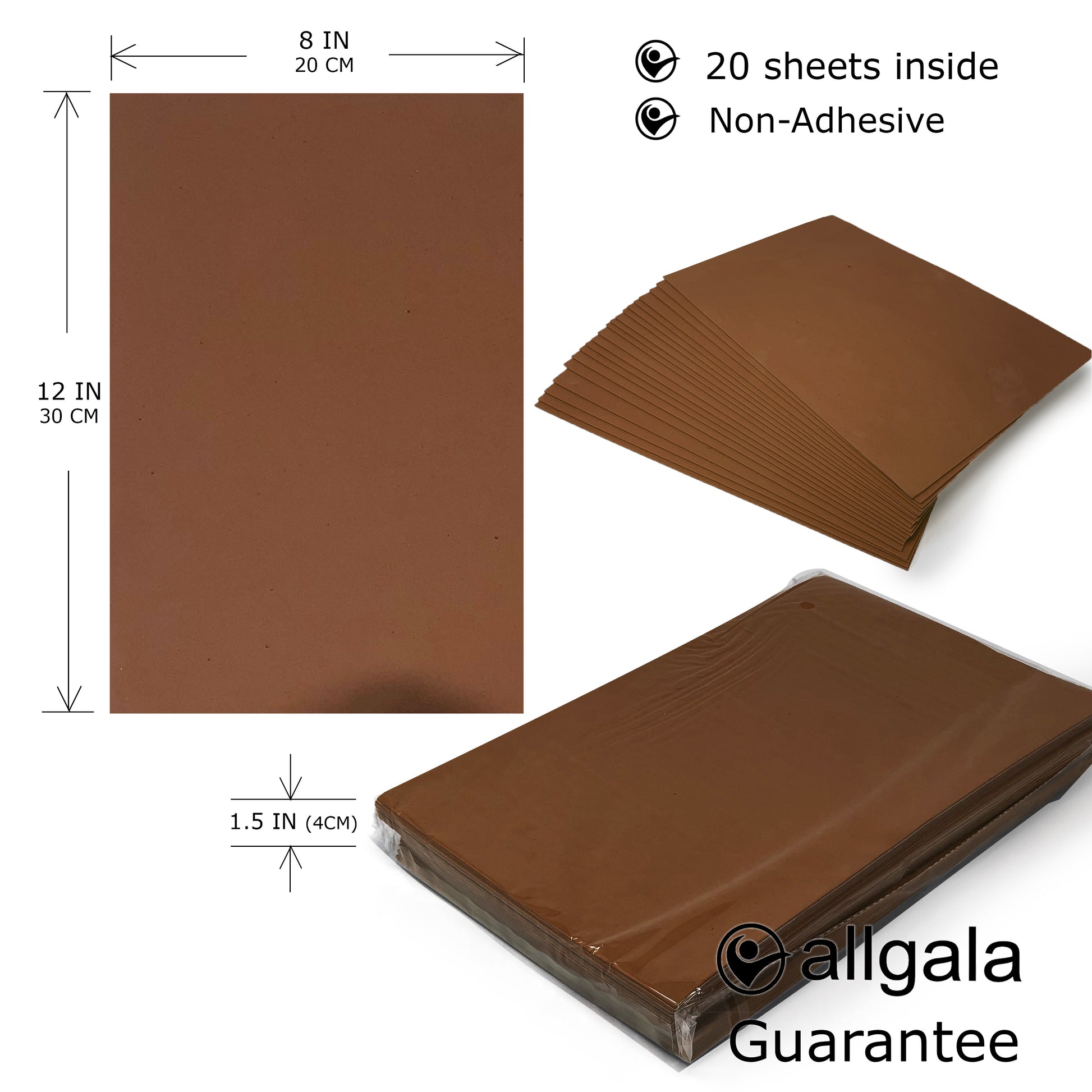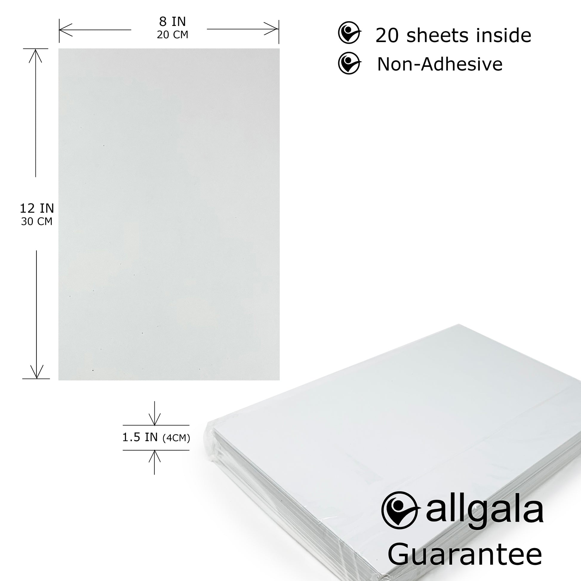 - 20 Sheets in a package. Dimension: 8" x 12", Thickness about 1/10 of Inch.