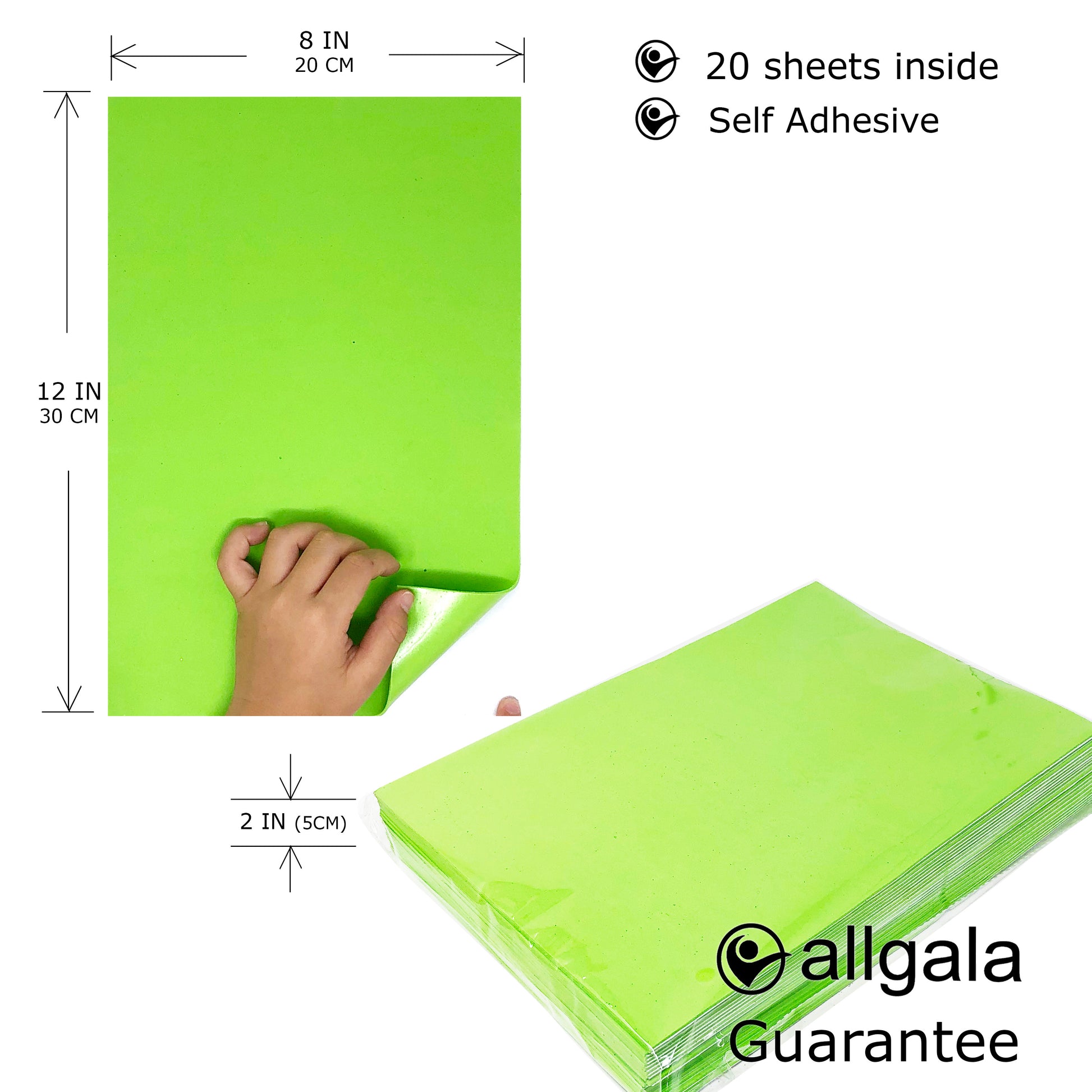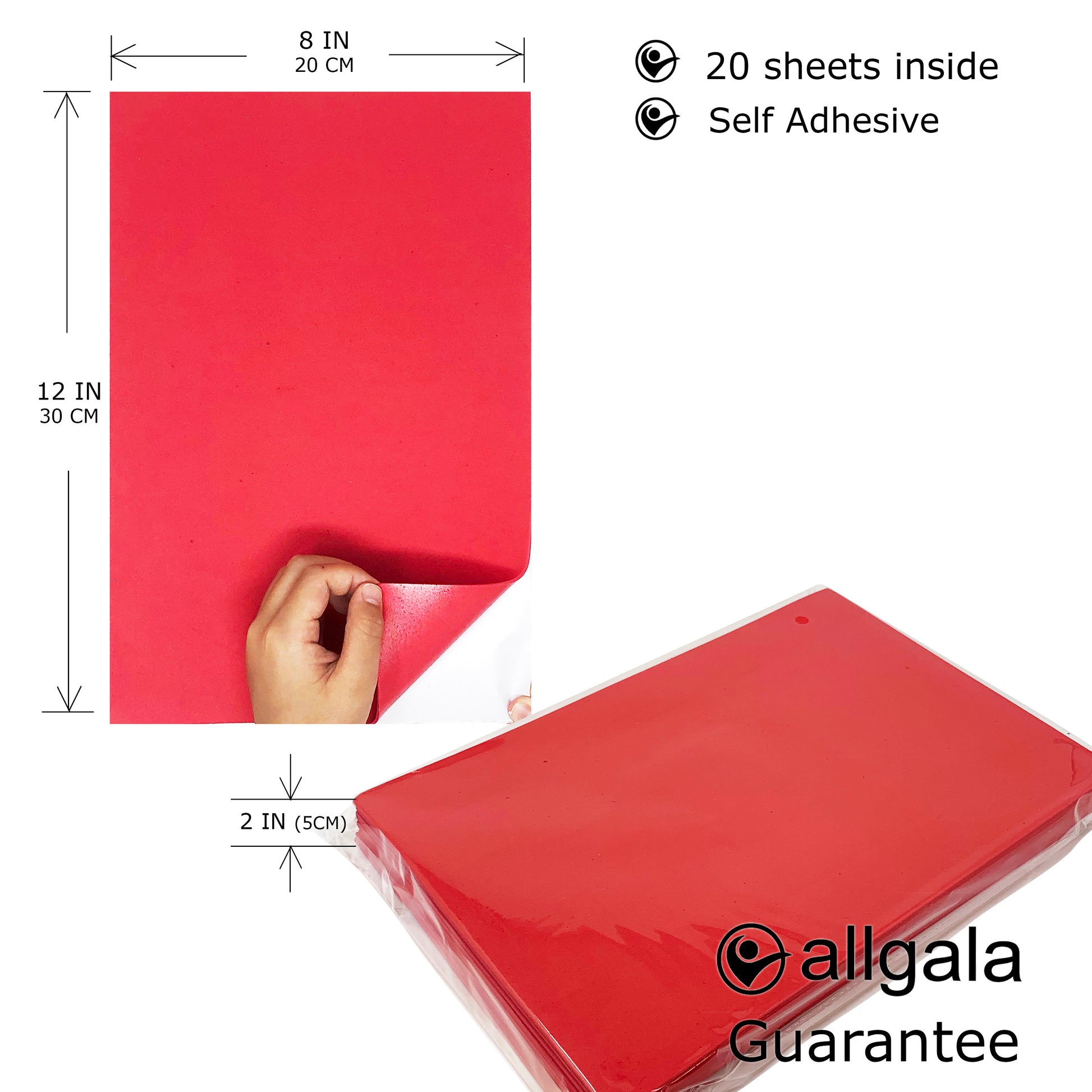 Allgala Foam Sheet 20 Pack EVA Foam Paper 8" x 12" Sheets - Self-Adhesive