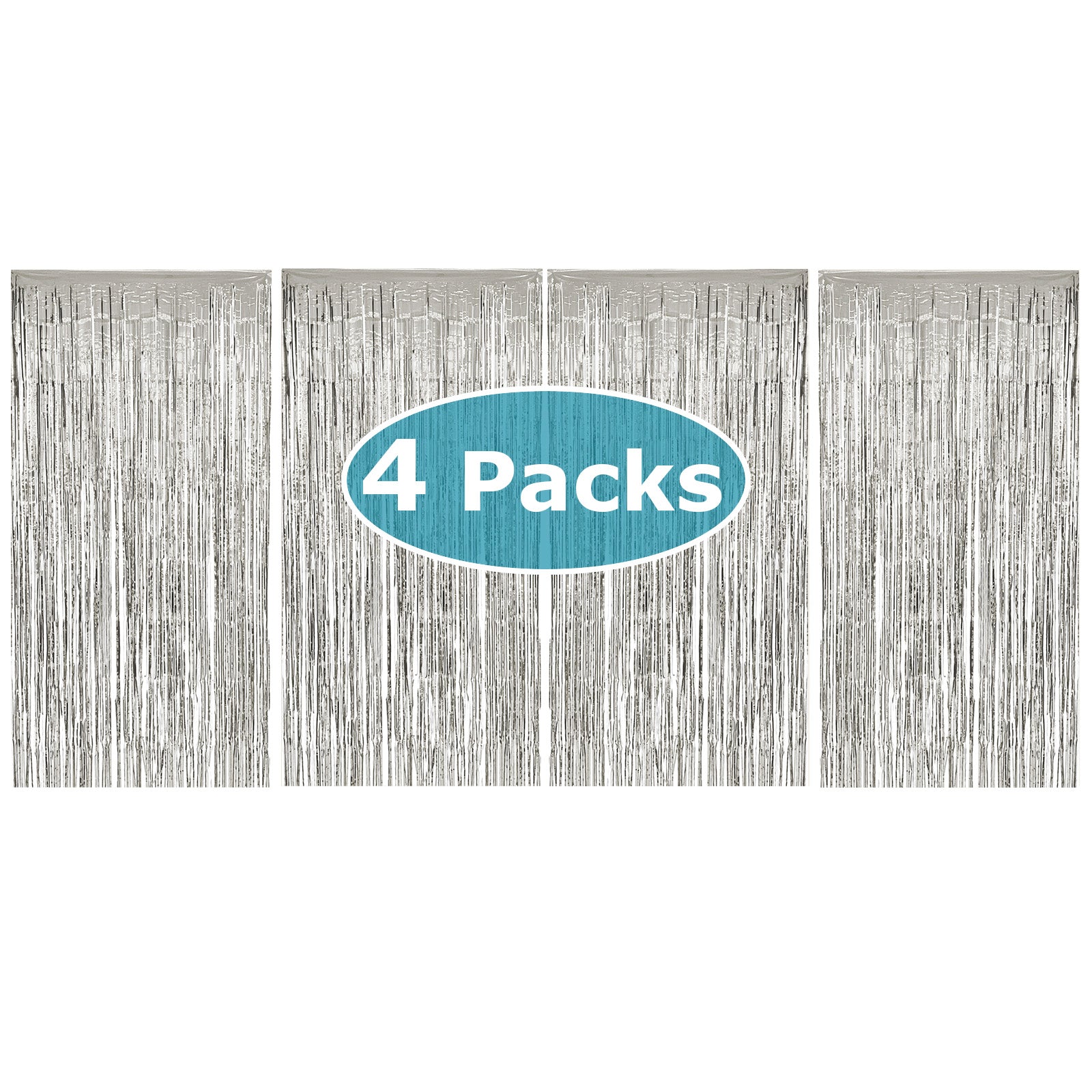 Allgala Back Drop 4PK (3x1 M) 9.7FT x 3.2FT Metalic Tinsel Party Photo Backdrop Curtains Door Fringe